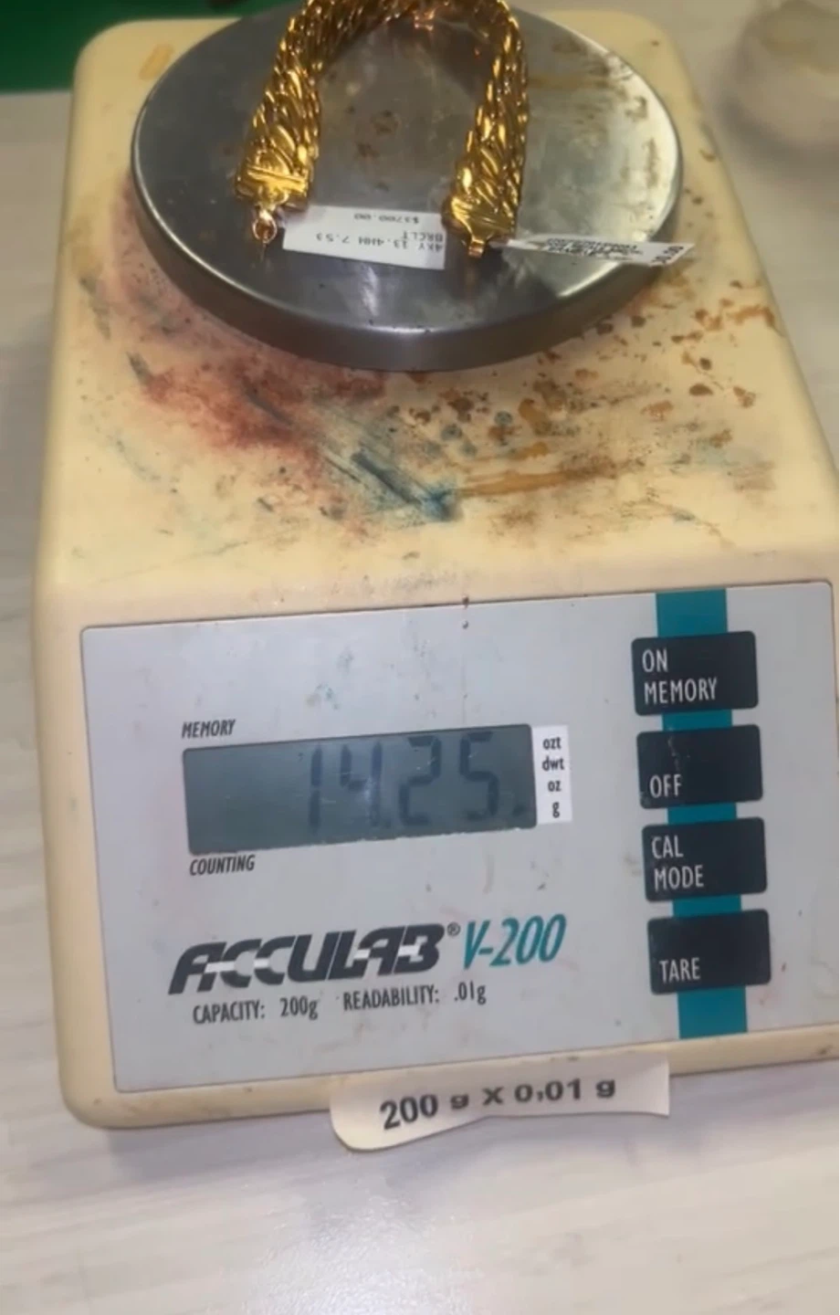 14K gold chain with cross pendant, approximately 8–9 grams.