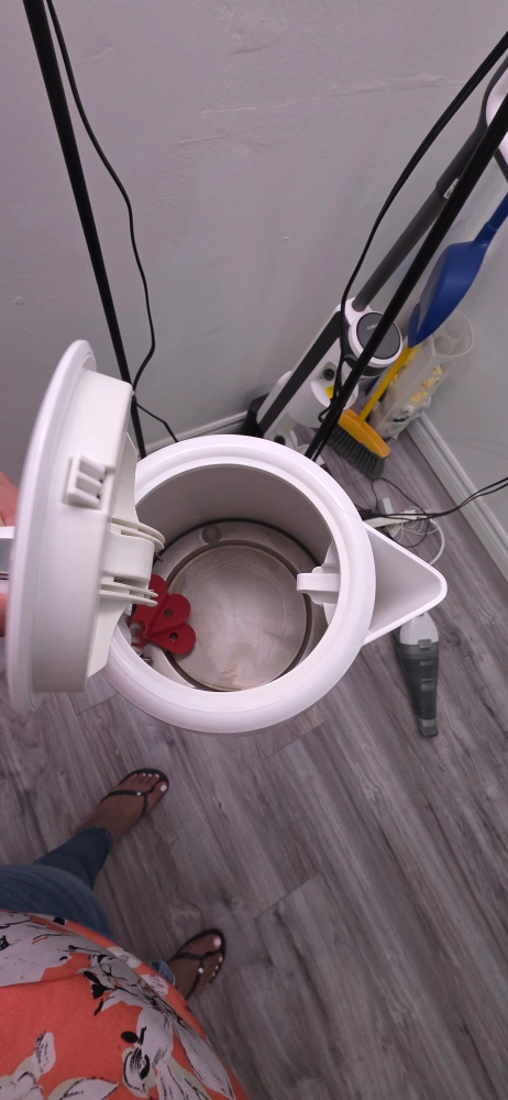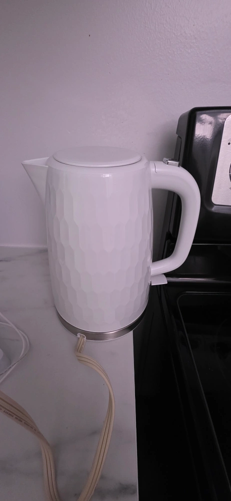 I'm giving a lovely white electric kettle with a honeycomb pattern. It's in great condition and heats water quickly. Perfect for tea or coffee!