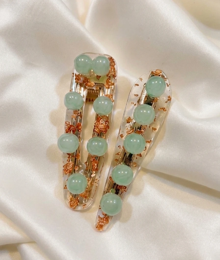 Mint Green/Rosegold Handmade Resin Hairclips