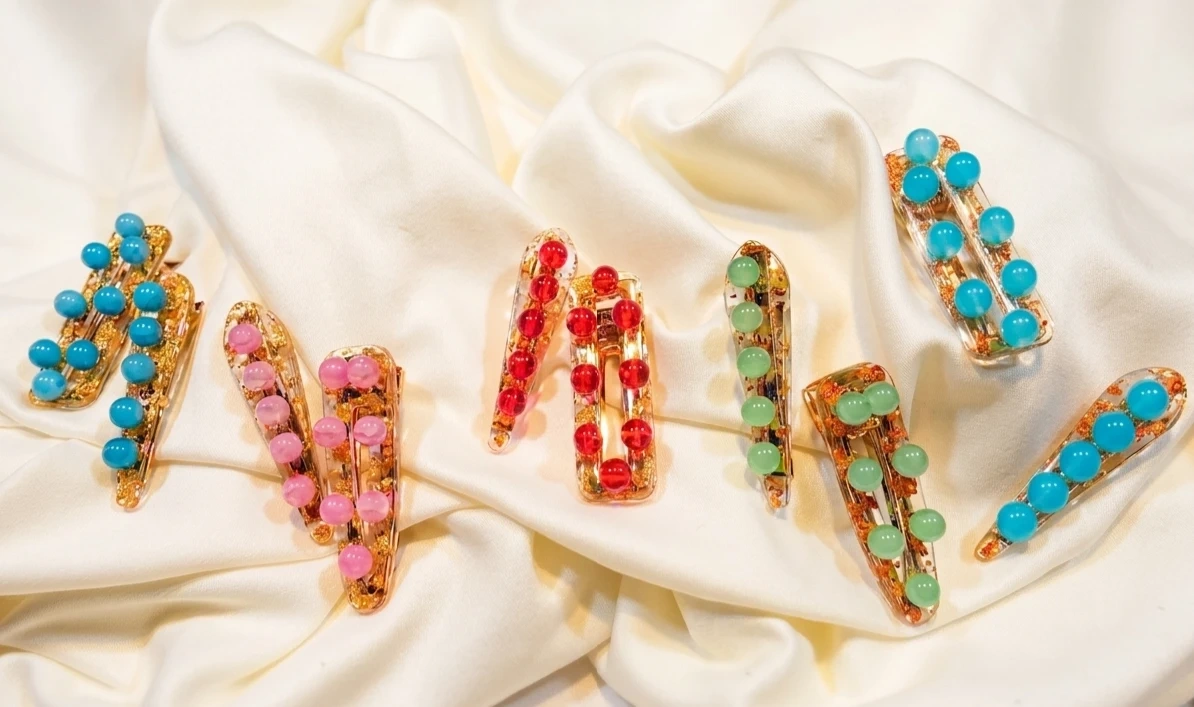 I believe that hair accessories should be as durable as they are beautiful. Every piece in my collection is handcrafted with a commitment to professional grade quality and longevity. Each hairclip is handcrafted with high viscosity UV resin and embedded high quality foil into the resin. I've individually secured every glass beads with E - 7000 jewelry adhesive. I wanted to ensure these beautiful clips were built to last. Reminder, the beads are (Glass) handle with care when using them. If dropped on the ground it can potentially break the beads. These are stunning in person. Perfect for Spring/Summer. Currently working on a silver foil set with glass beads. Enjoy!