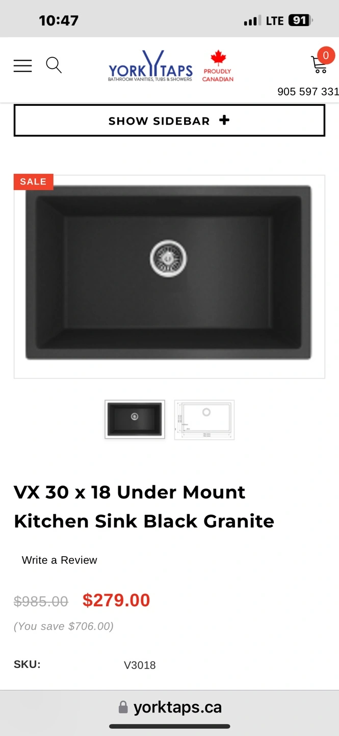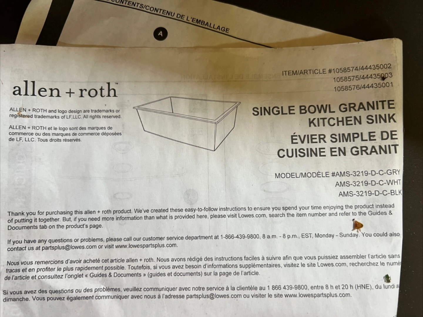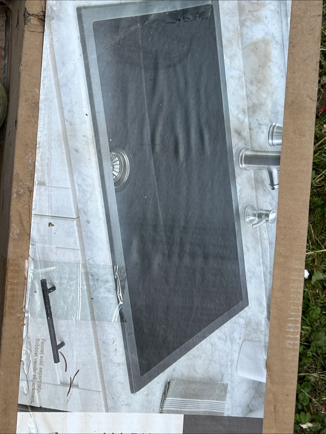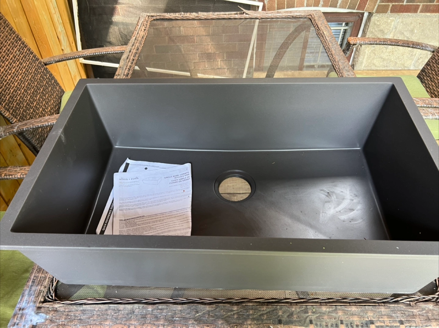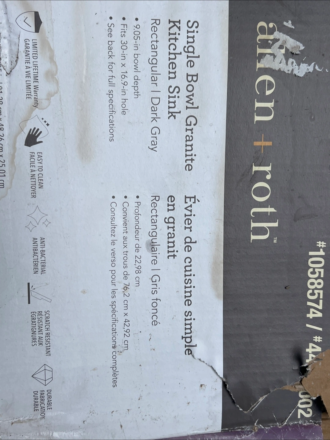 A single bowl granite kitchen sink, in a lovely dark gray colour. It is a perfect addition to any kitchen. Find comfort in using this sink for your everyday needs.