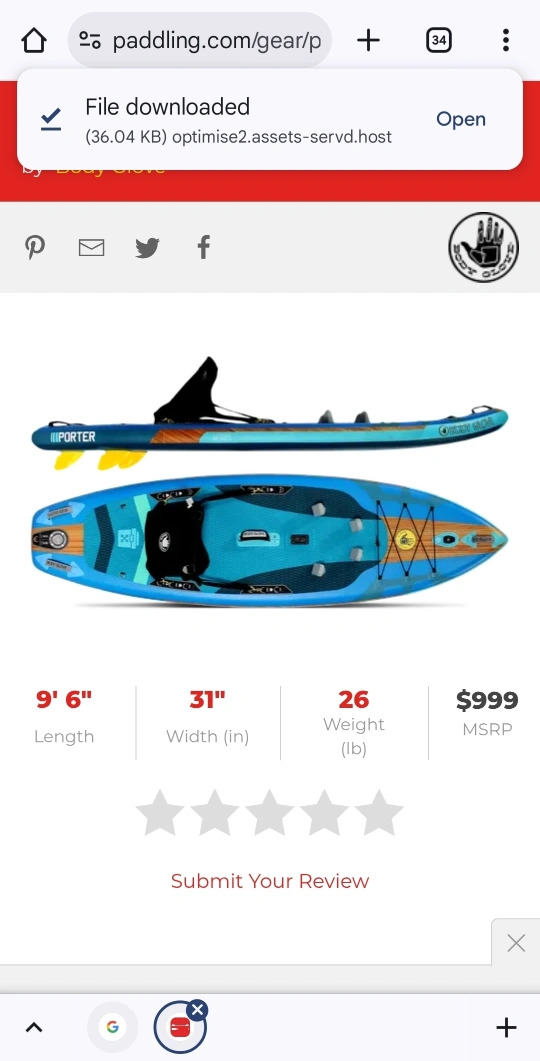 BODY GLOVE 9'6" PORTER INFLATABLE KAYAKS