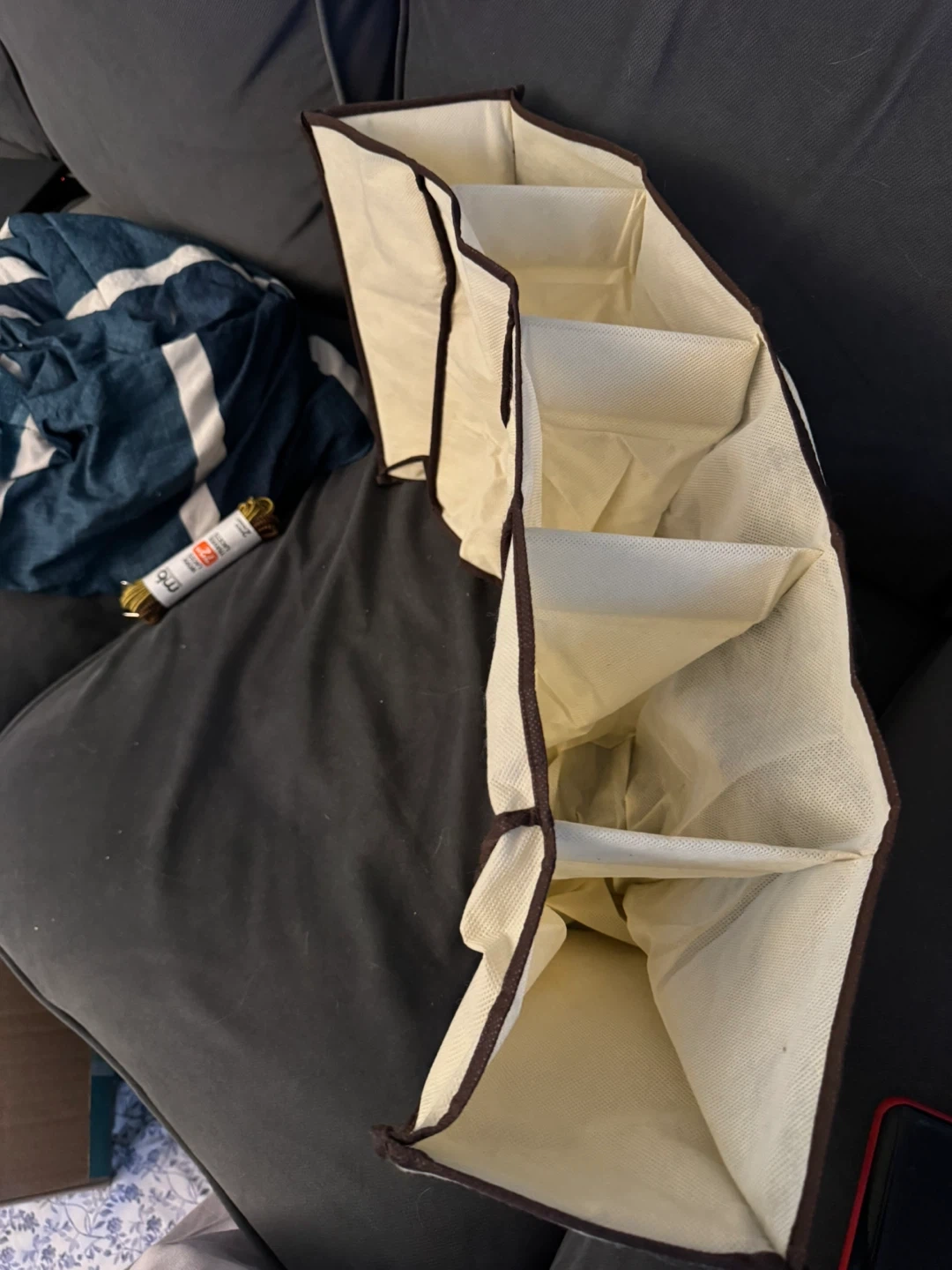 This hanging closet organizer is perfect for storing shoes or accessories. It's made of durable fabric and hangs from any closet rod. Several compartments provide ample storage space.