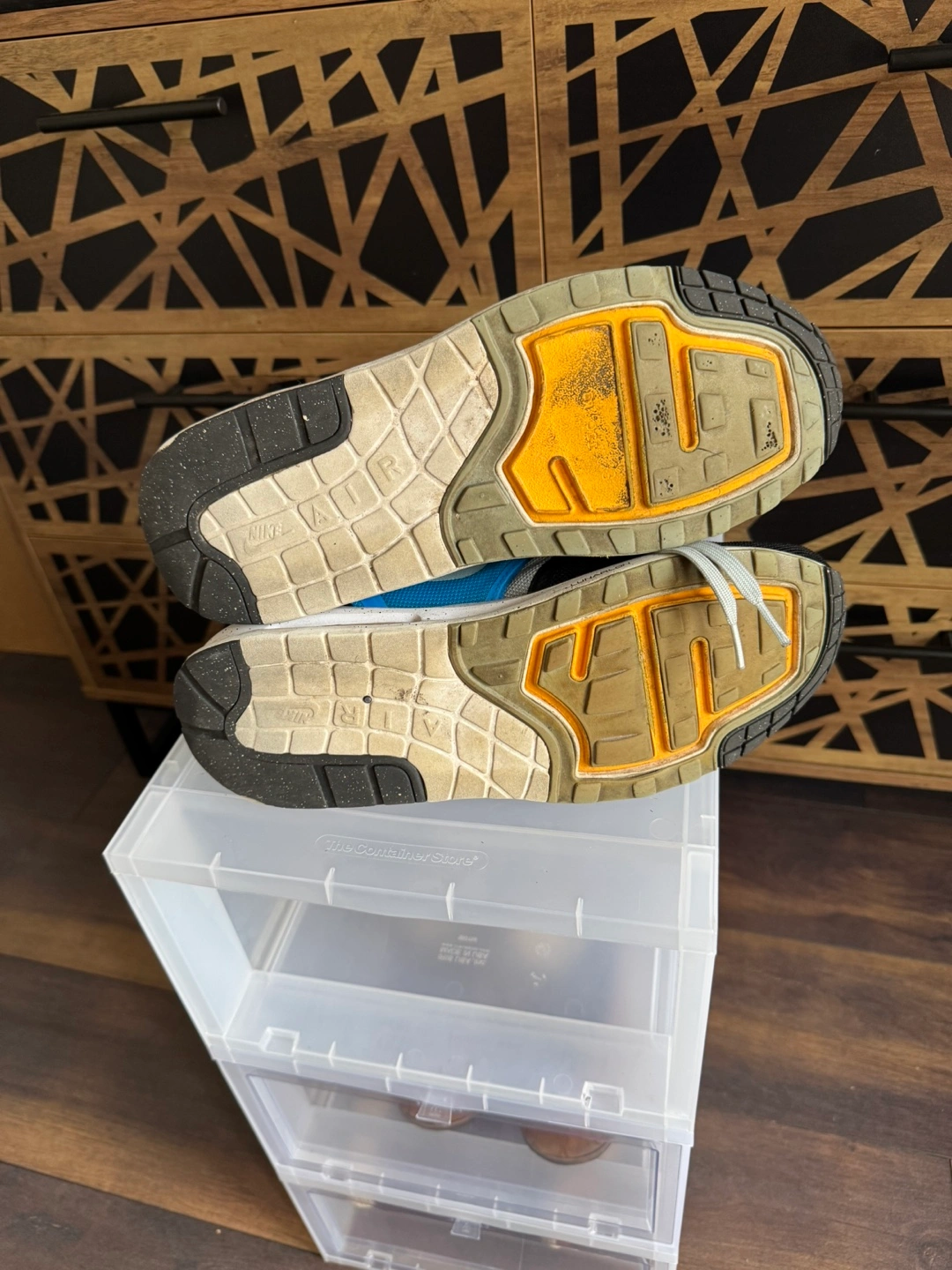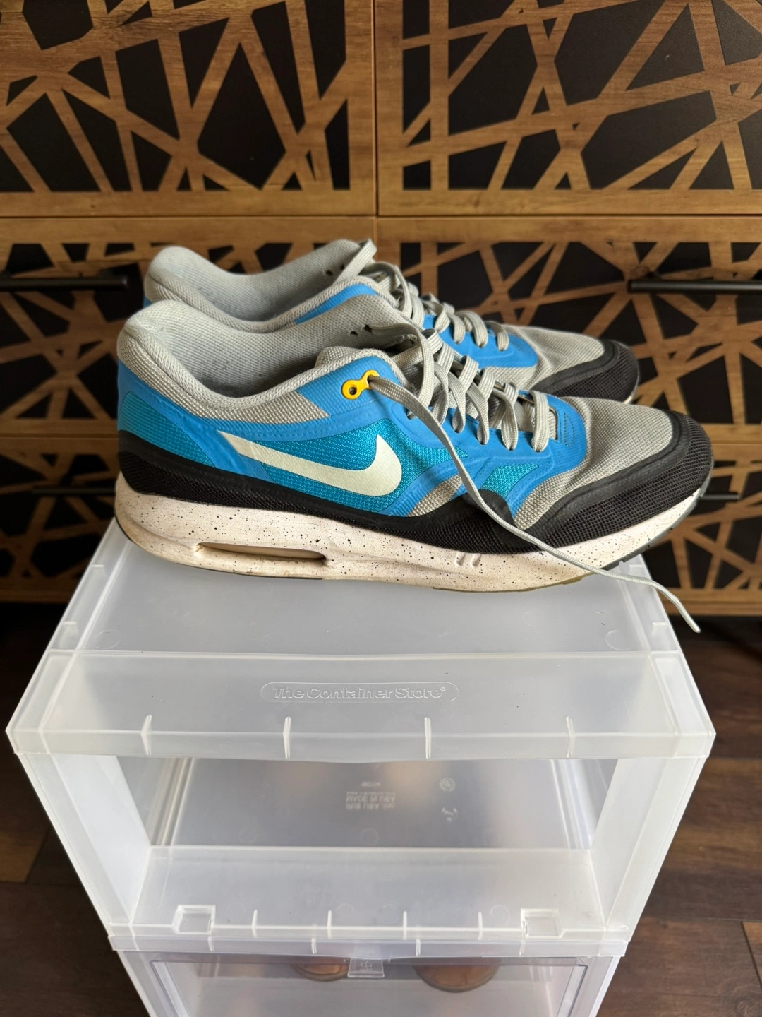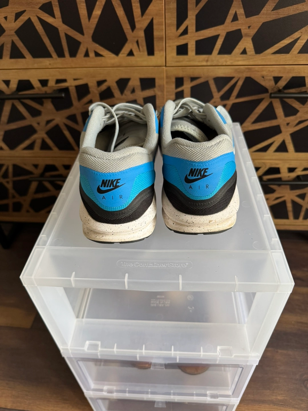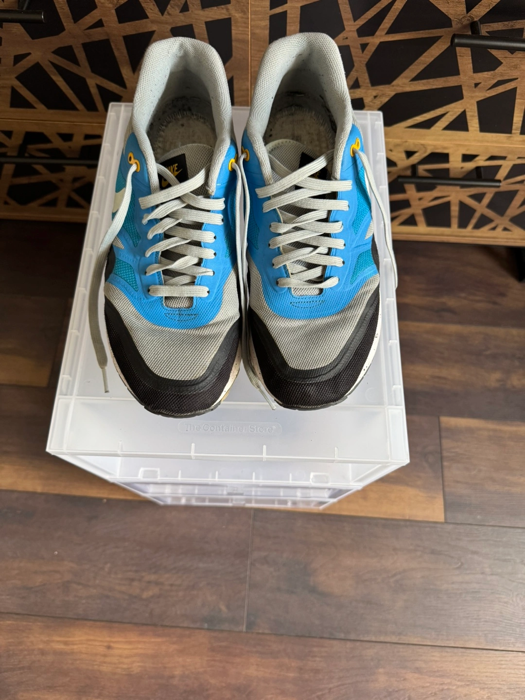 Selling a pair of Nike Air Max 1 sneakers in a cool blue and grey colourway! They've got the classic Air Max cushioning for comfort and a stylish design with the Lunar sole for additional comfort. There are some signs of wear, but they're still in good shape for everyday wear.