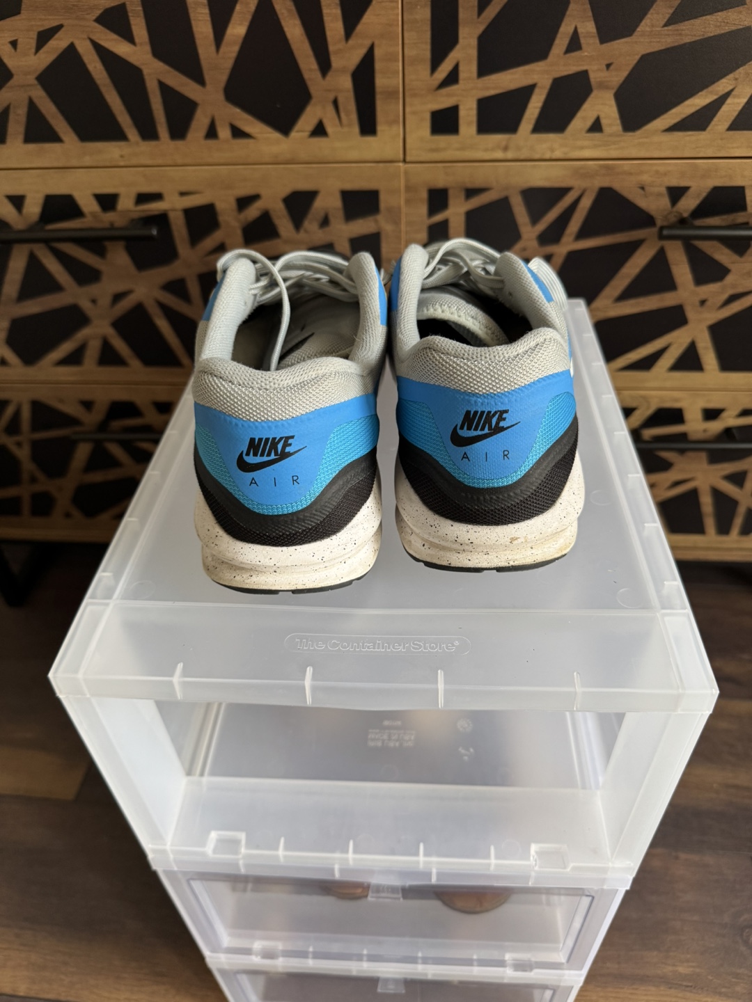 Selling a pair of Nike Air Max 1 sneakers in a cool blue and grey colourway! They've got the classic Air Max cushioning for comfort and a stylish design with the Lunar sole for additional comfort. There are some signs of wear, but they're still in good shape for everyday wear.
