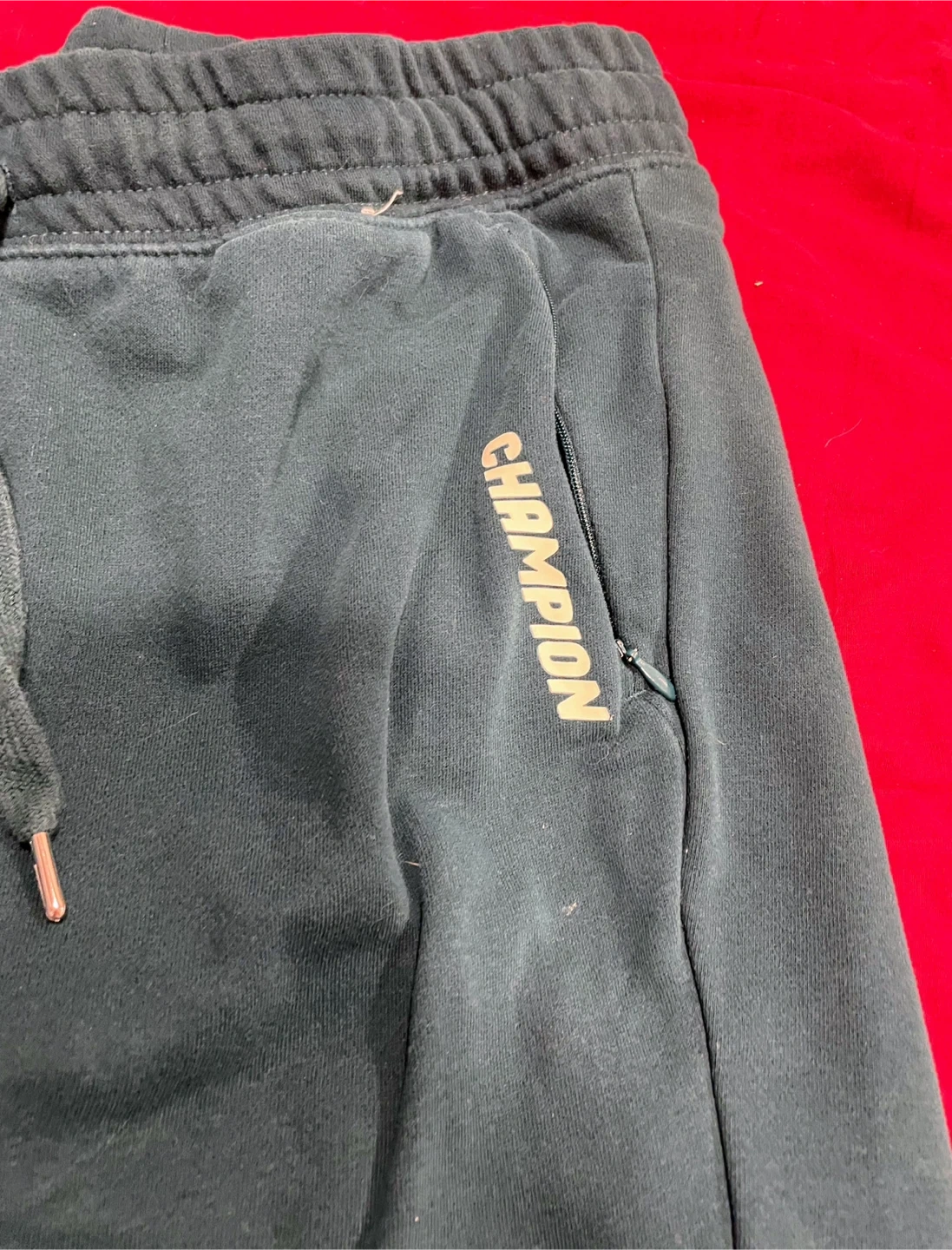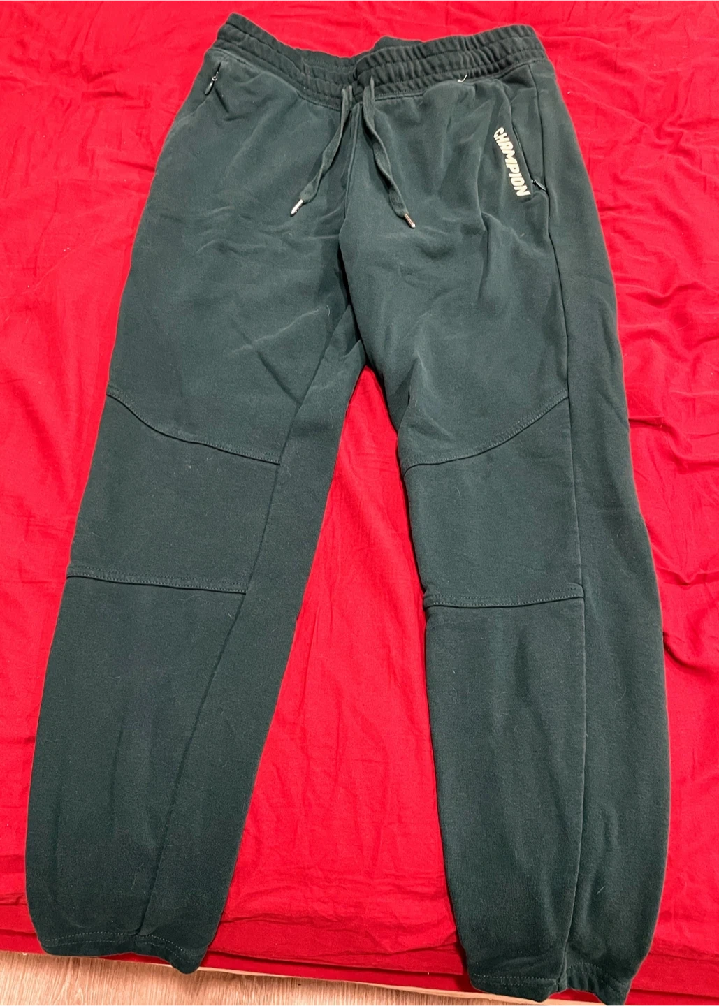 These are dark green Champion sweatpants with an elastic waist and drawstring. They feature a logo on the left leg and zippered pockets. Made in Vietnam. Perfect for everyday comfort! Used - like new. Size Small Women’s. Just tried them on and I didn’t like how they fit. Need them gone asap! $30 item! No low ballers! Pick up only! No deliveries! Cash or E-Transfers is preferred! MSG me if you’re interested in coming to buy the item asap! MSG me for more information if needed.