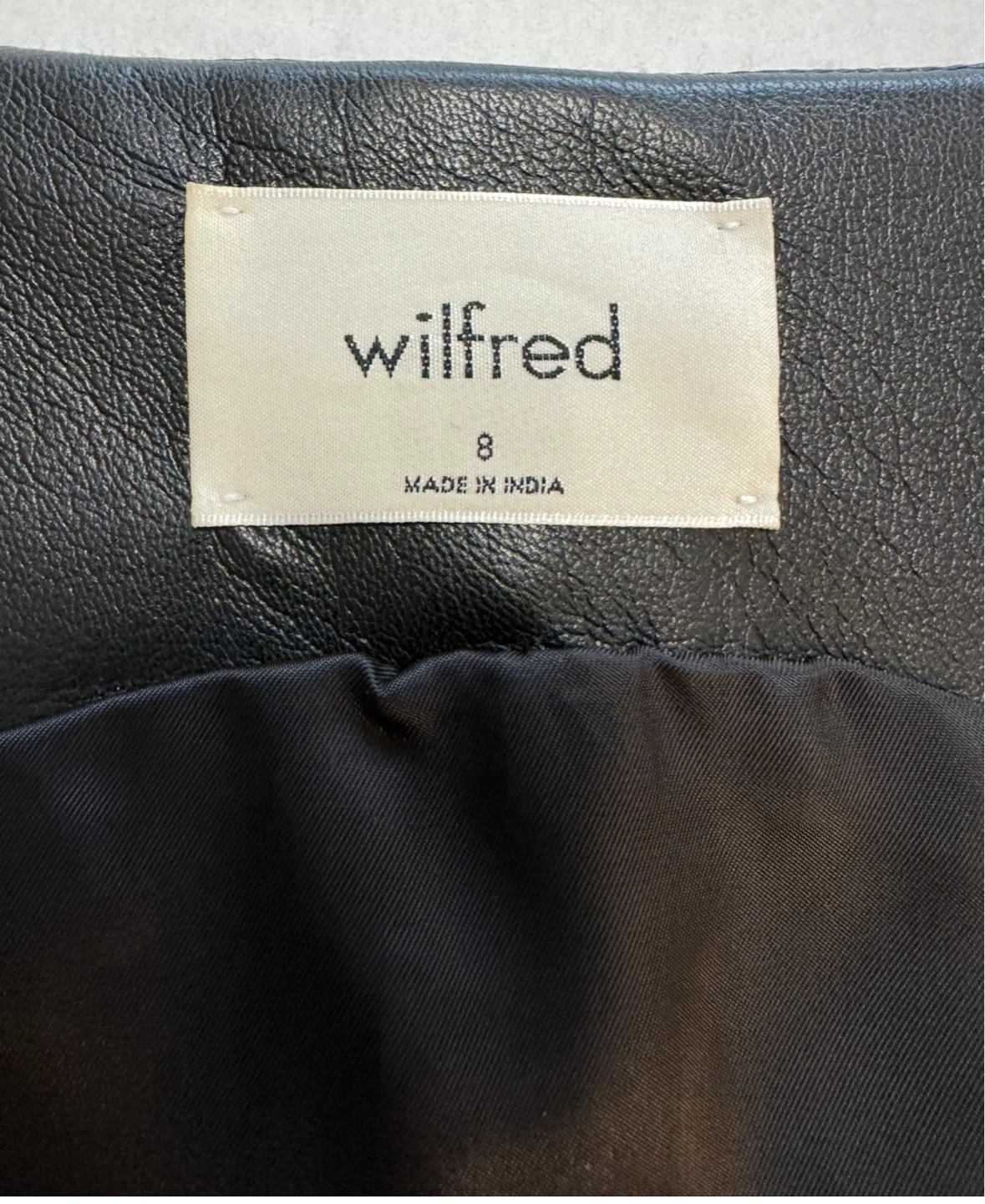 Selling a Wilfred black faux leather vest in size 8. It's in great condition and made of 100% polyurethane face, 100% polyester back, and 100% cupro lining. Perfect for adding a stylish touch to any outfit!