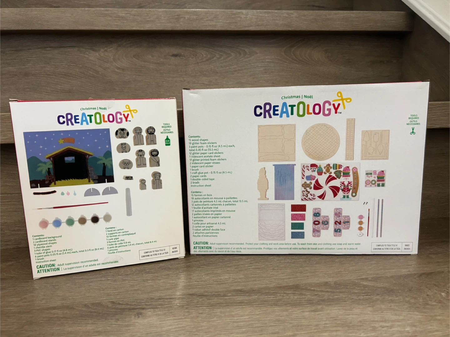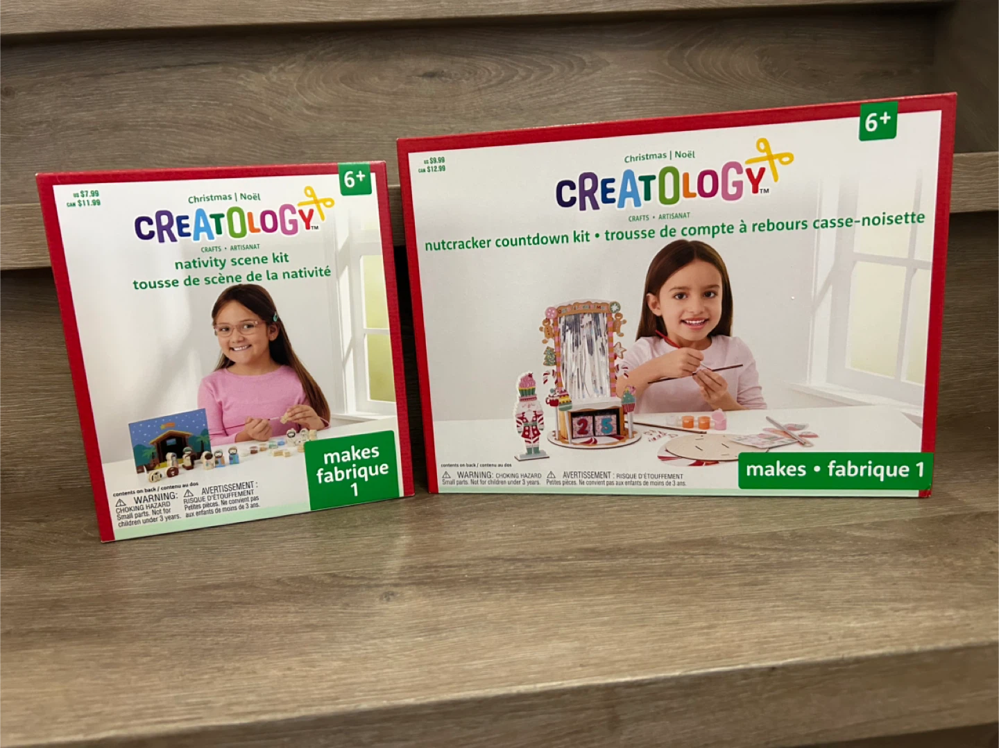 two Creatology Christmas craft kits! One is a Nativity Scene kit, and the other is a Nutcracker Countdown kit. Both kits are suitable for ages 6+ .Perfect for some holiday crafting!
