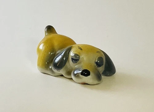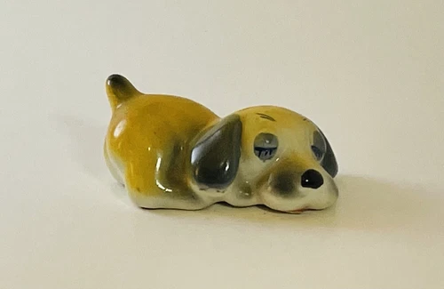 Such a sweet vintage ceramic miniature puppy - Marked made in ‘ITALY’ - Little fellow measures about 3/4 of an inch tall and 2 inches long. Excellent condition. No chips or cracks.