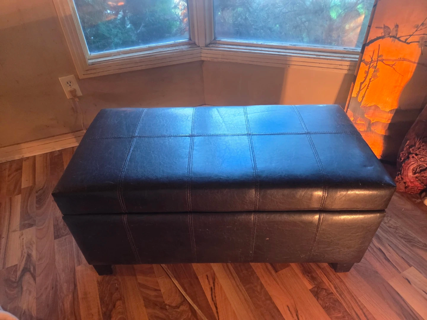 This black faux leather storage ottoman bench offers a neat place to stash blankets or other household items. Its tufted top provides a comfortable place to sit. It's a great piece for adding extra seating and storage to a living room or bedroom.