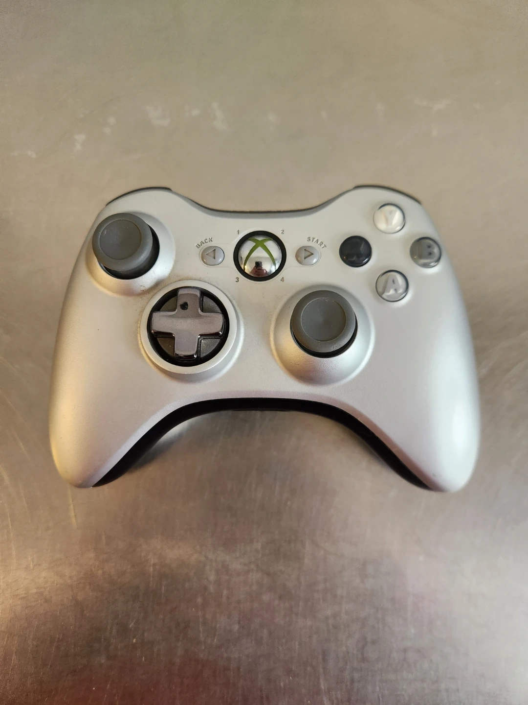 Silver wireless controller for the Xbox 360. It's fully functional and ready for gaming. Works with most Xbox 360 consoles.