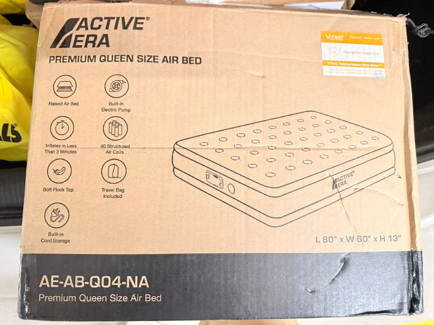 Looking to sell my Active Era premium queen size air bed. It's in great shape and comes with a built-in electric pump for easy inflation and deflation. It inflates in less than 3 minutes and has 40 structured air coils for added comfort. The box includes a travel bag for convenient storage and transportation. Dimensions are L 80" x W 60" x H 13".