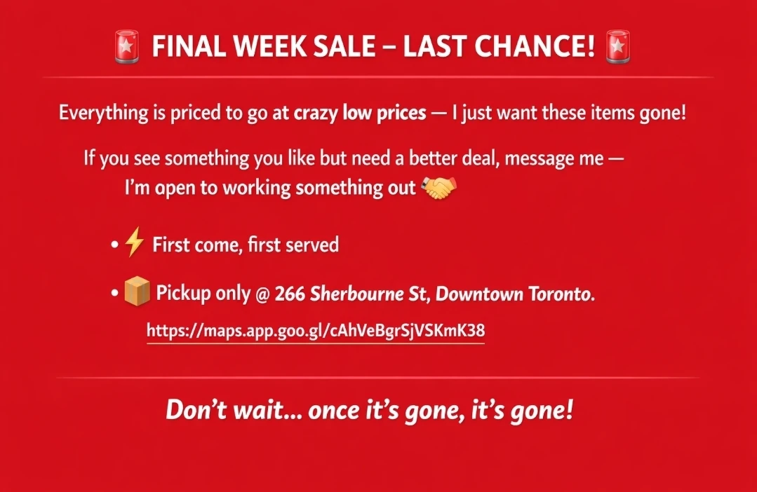 NOTE - Interac sale only (No Cash). Item is sold as-is. You’re welcome to inspect or test it before purchase. All sales final.