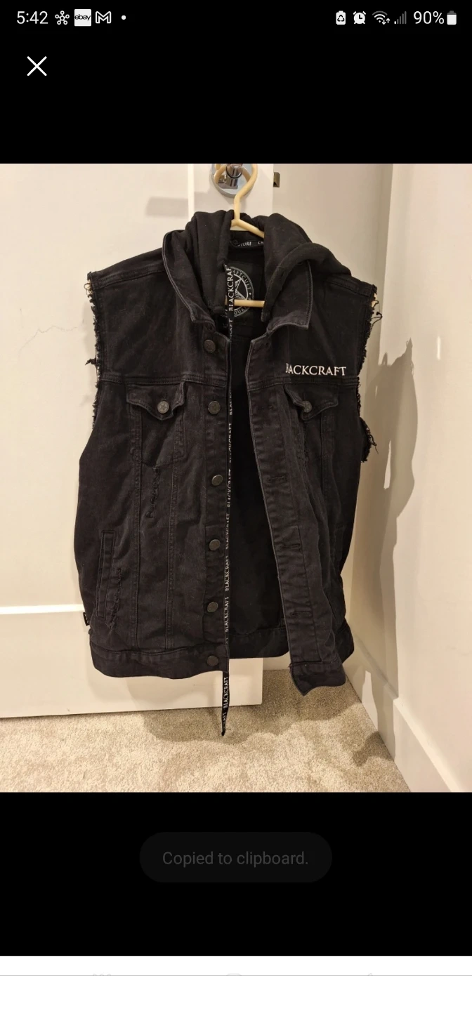 Selling a Blackcraft Cult denim vest with a hood. It's in great condition and has a unique, edgy look. Perfect for layering or wearing on its own!