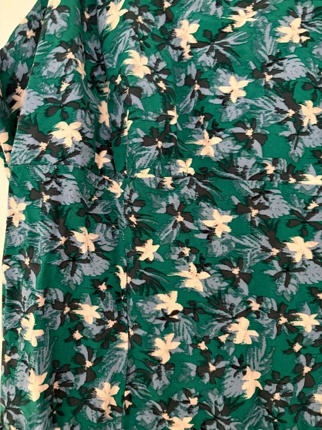 This adorable Uniqlo dress features a stylish green floral pattern, perfect for any casual occasion! It's a size large and has only been worn once. Love the straps and leg slit! Pick up at King and Portland. Cash only