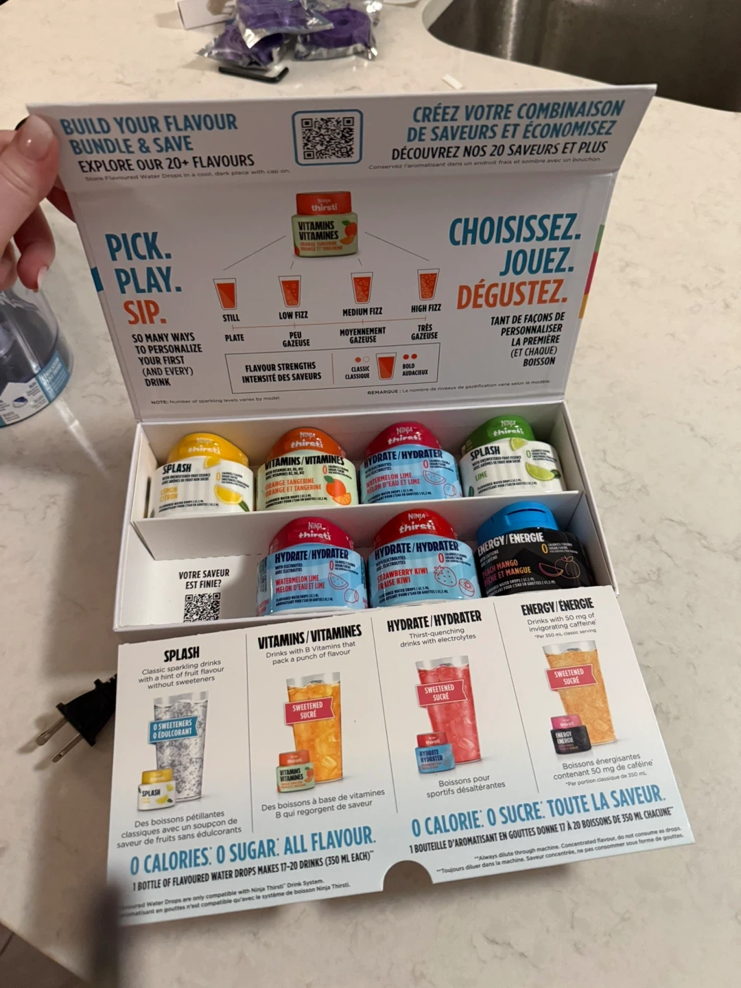 Create your own customized beverages with the Ninja Thirsti Drink System. It's designed to make sparkling water and flavoured drinks. Includes a variety of flavour pods.