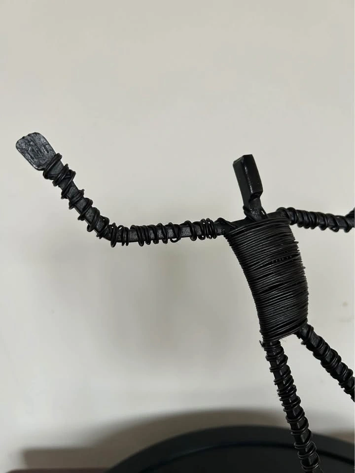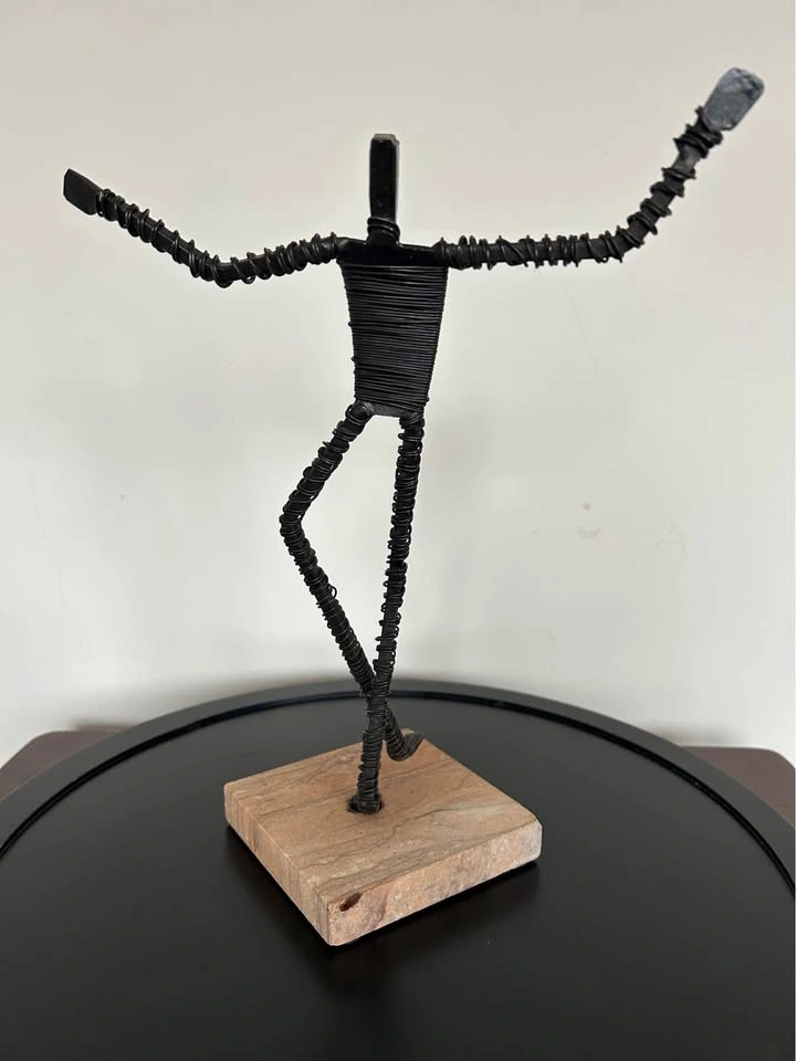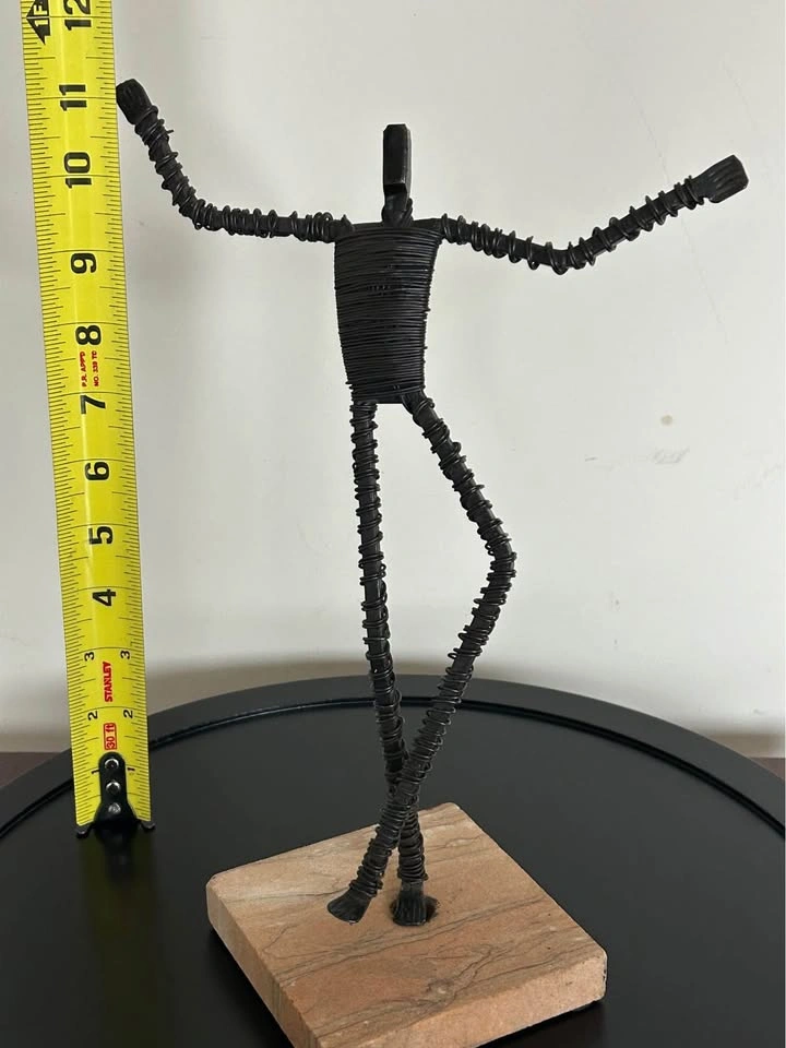 Vintage Brutalist Metal Wire Figure Sculpture on Stone Base 10,5