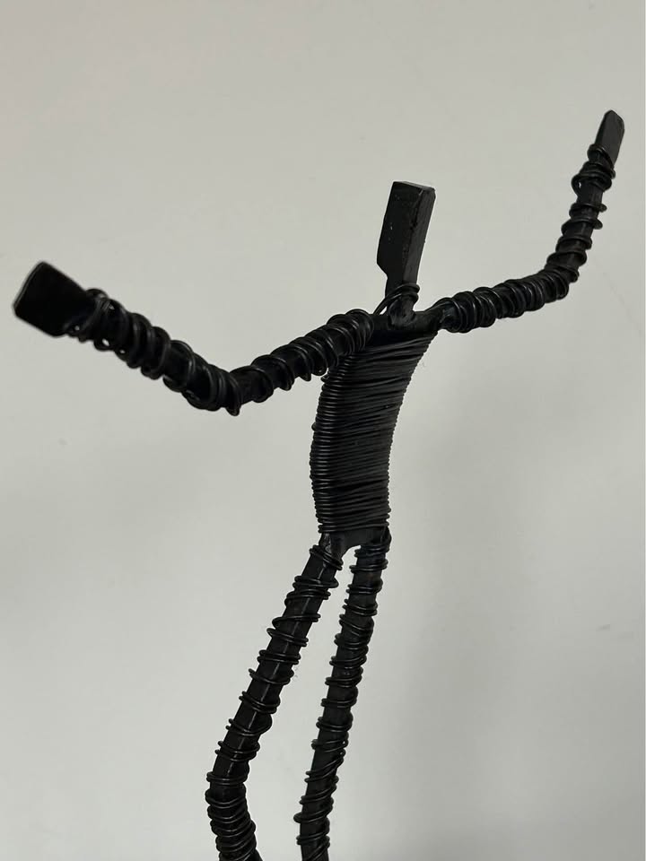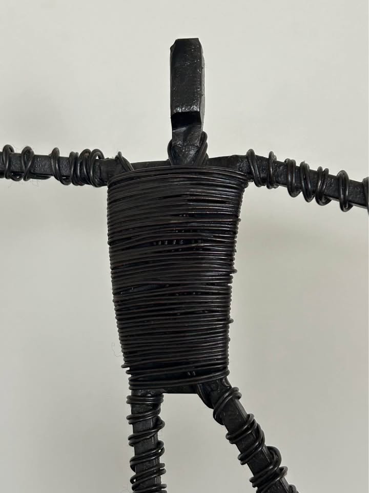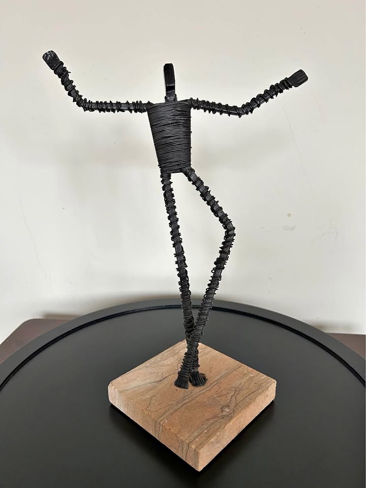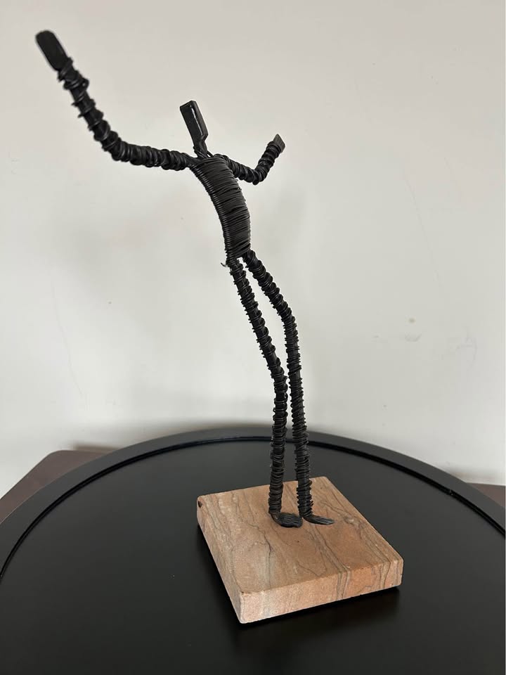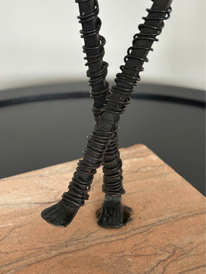 Vintage Brutalist Metal Wire Figure Sculpture on Stone Base 10,5