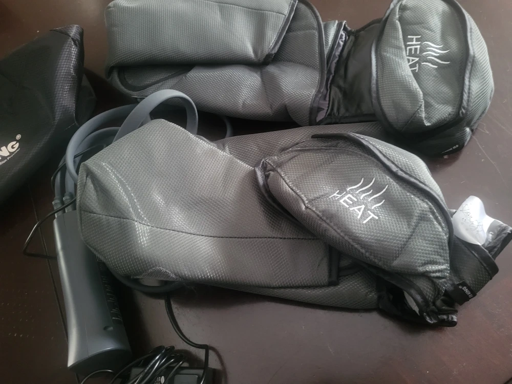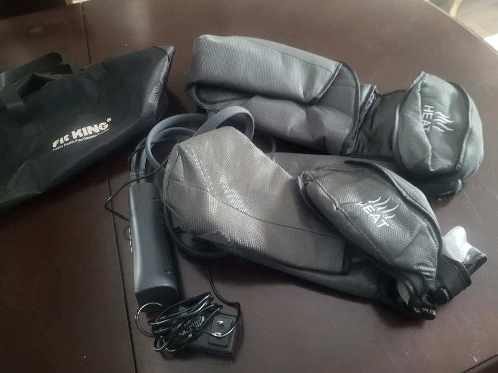This Fit King leg massager comes with heat functionality. It includes a carrying bag for easy storage and transport. It's designed for relaxing leg massages.