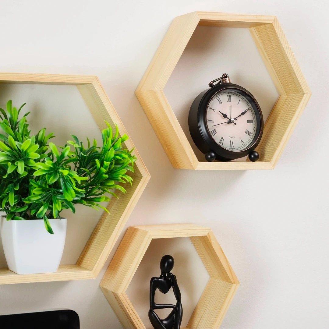 Set of 3 Hexagon Wooden Shelves 🥕