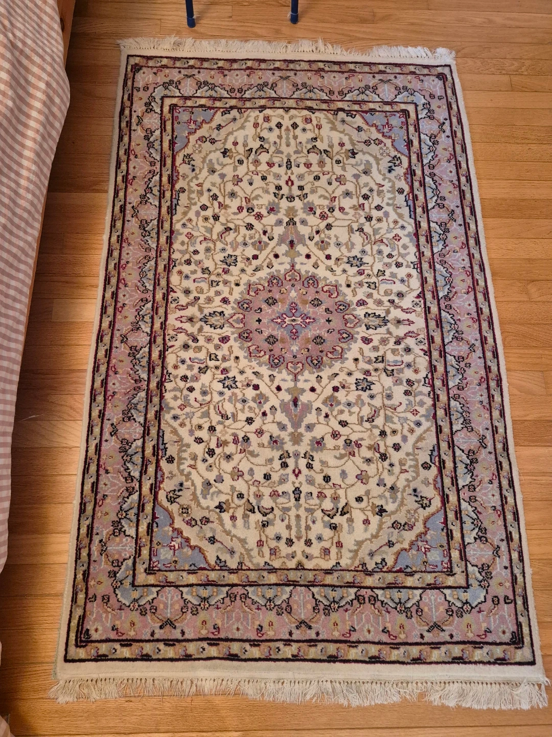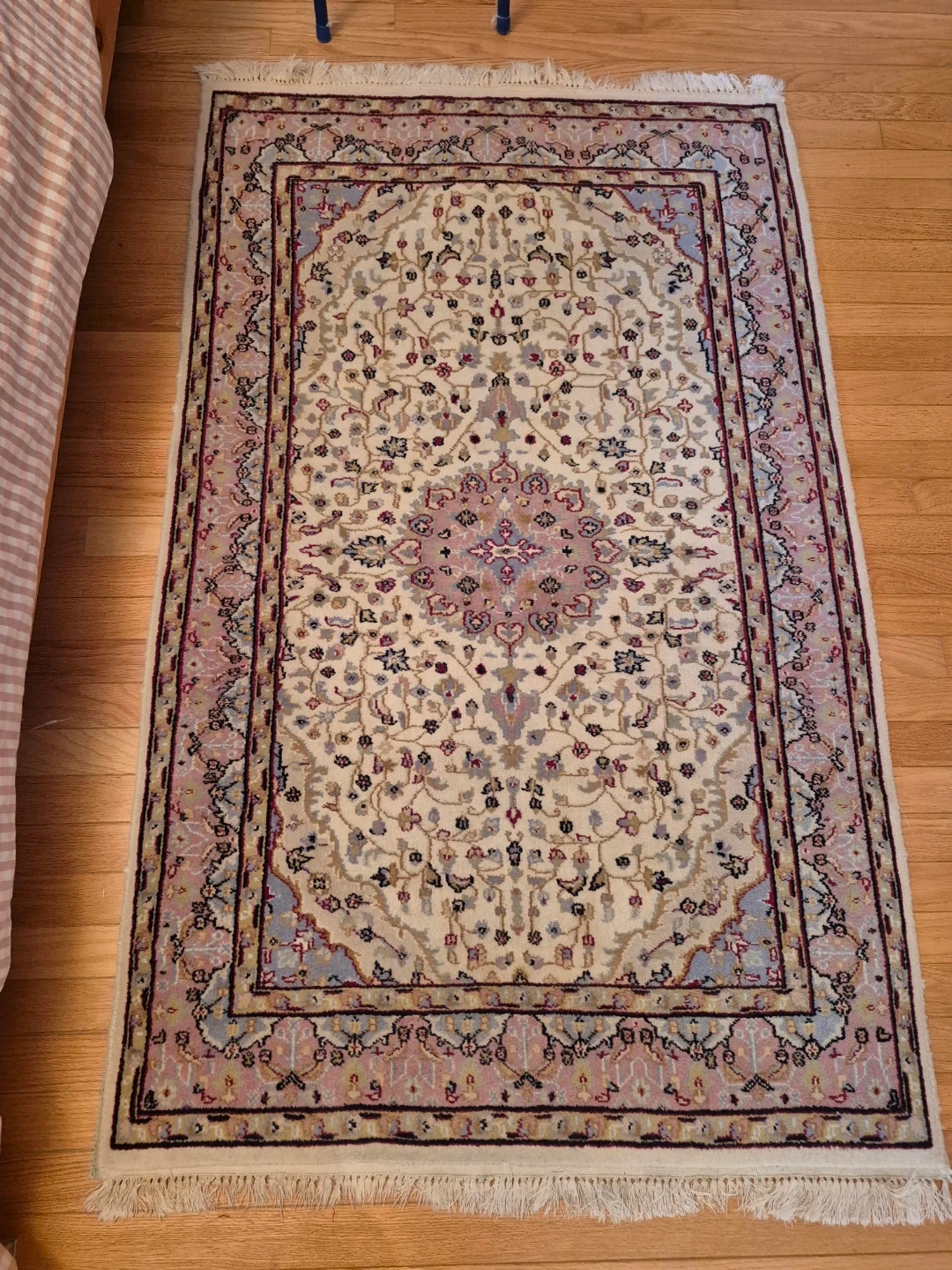 Indo-Persian Kashmir carpet rug Handmade Wool: Pink/Cream/Blue