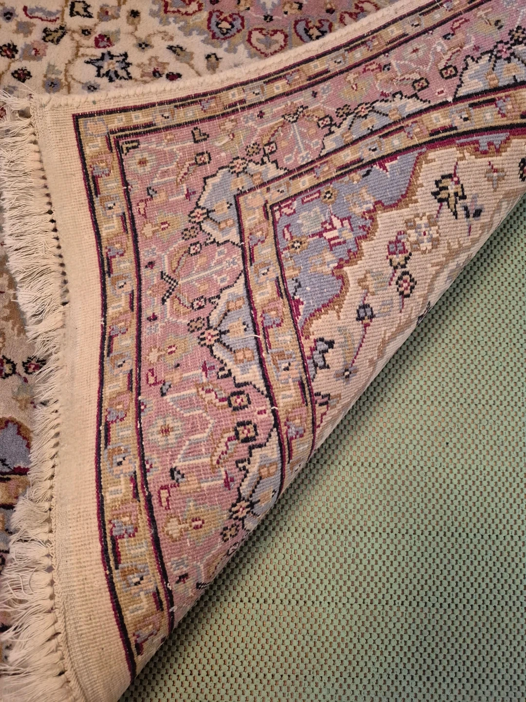 A lovely authentic Indo Persian, Handmade Kashmir rug, with approx 120 knots per square inch, fine wool pile and cotton weft/warp.