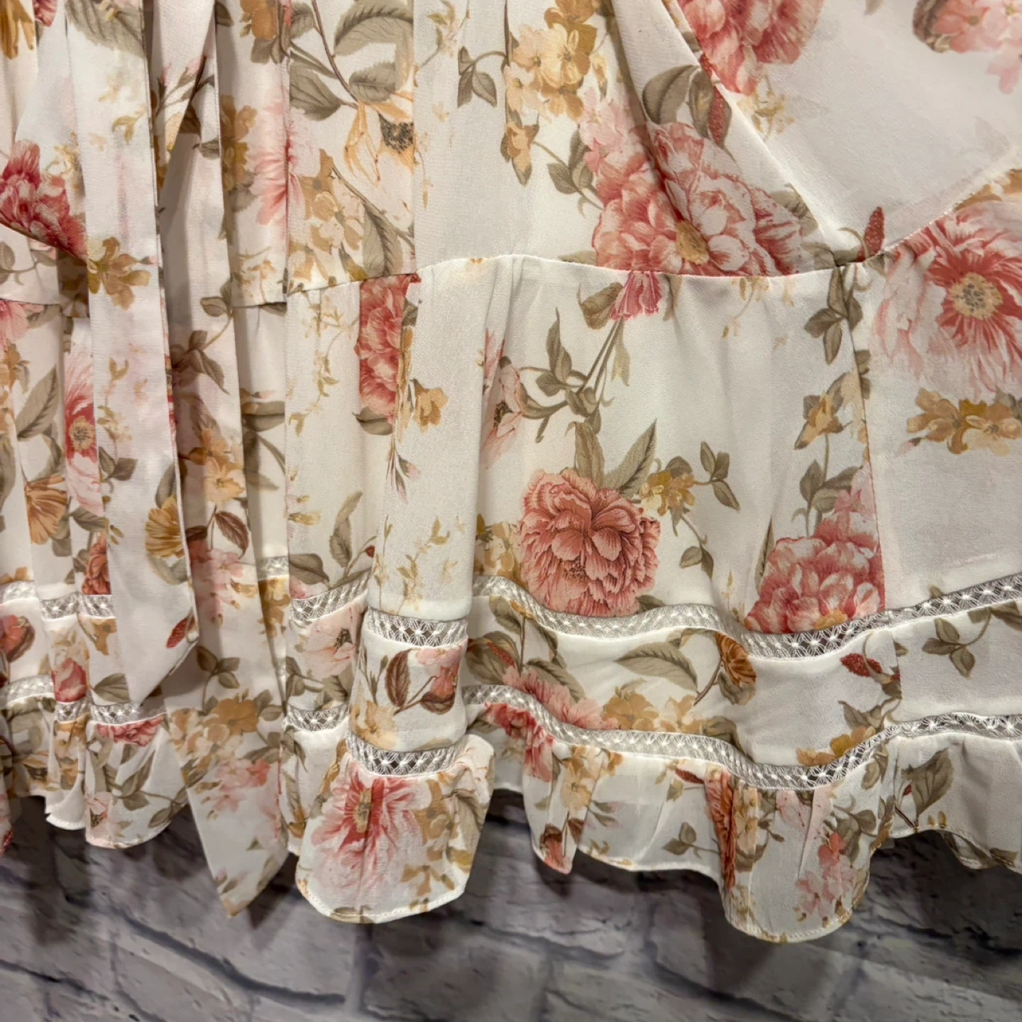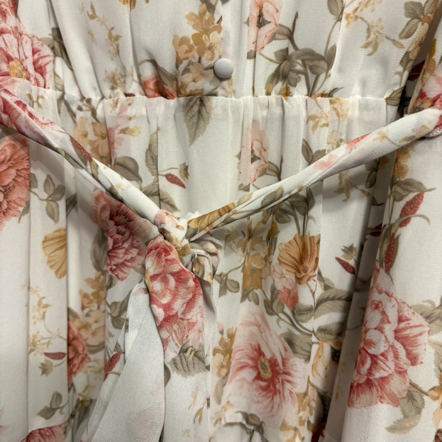 This is an Ever New Petite midi dress with a beautiful floral print. It features a V-neck with button detailing and a tie waist. The fabric is lightweight and perfect for warmer weather. Pick up only.