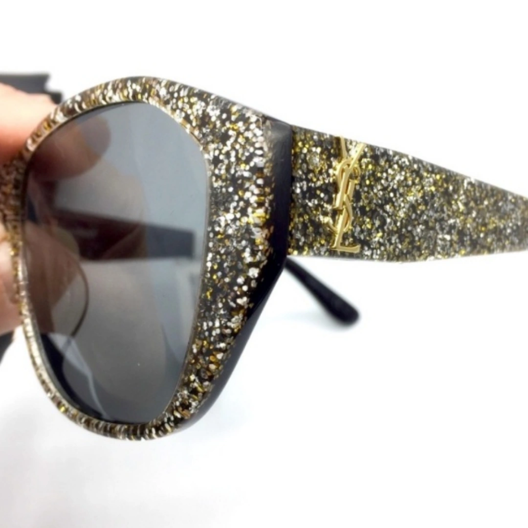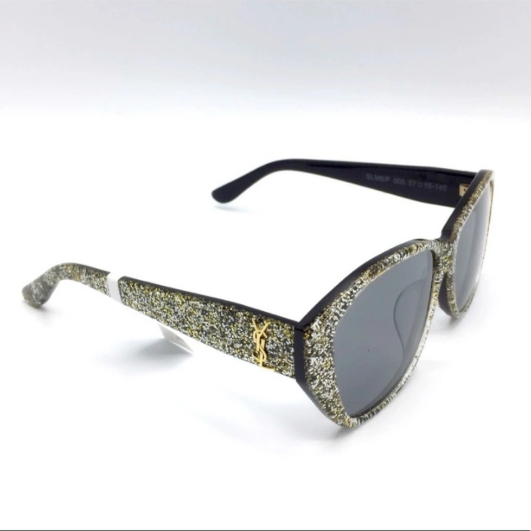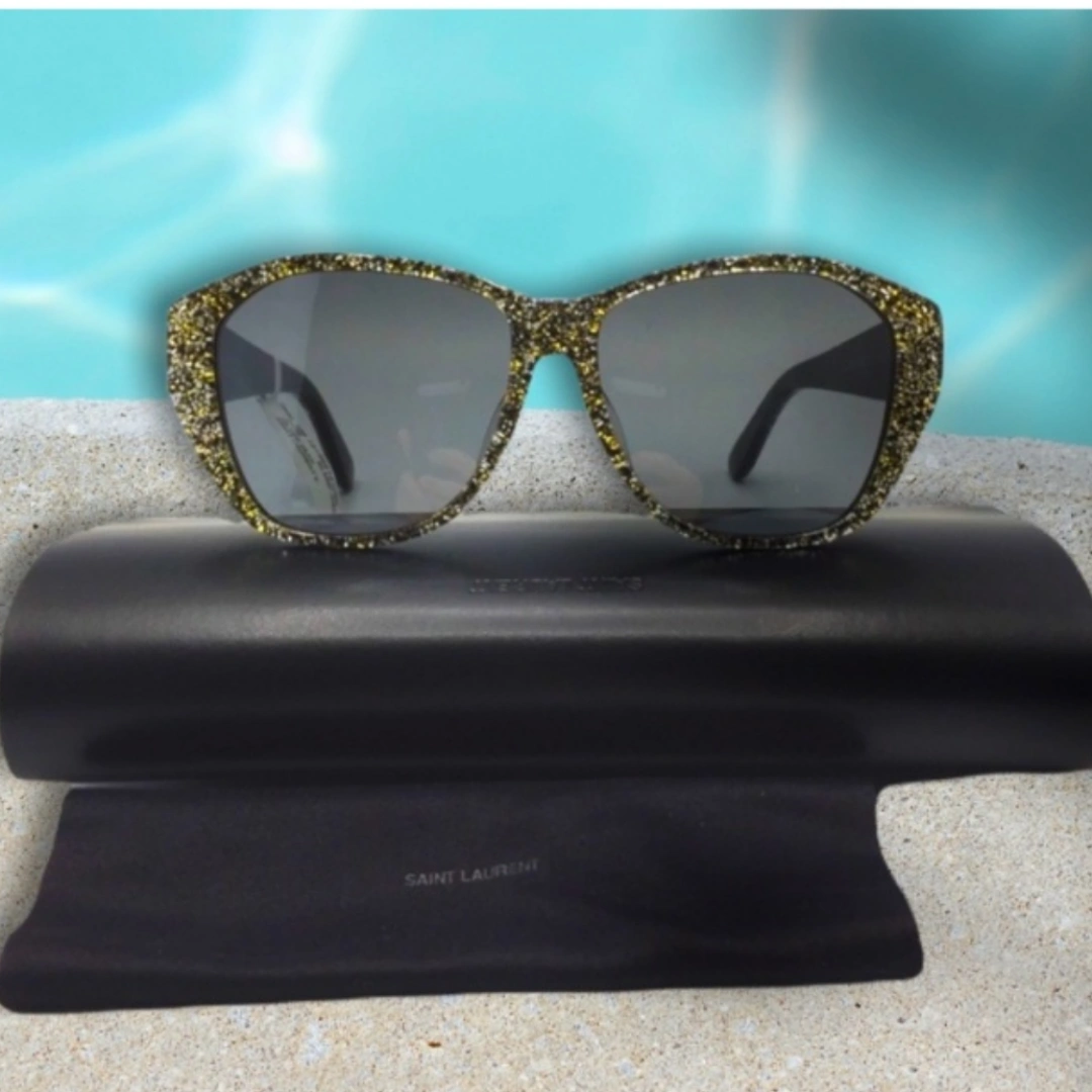 Yves Saint Laurent YSL Silver Gold Sparkle Sunglasses.