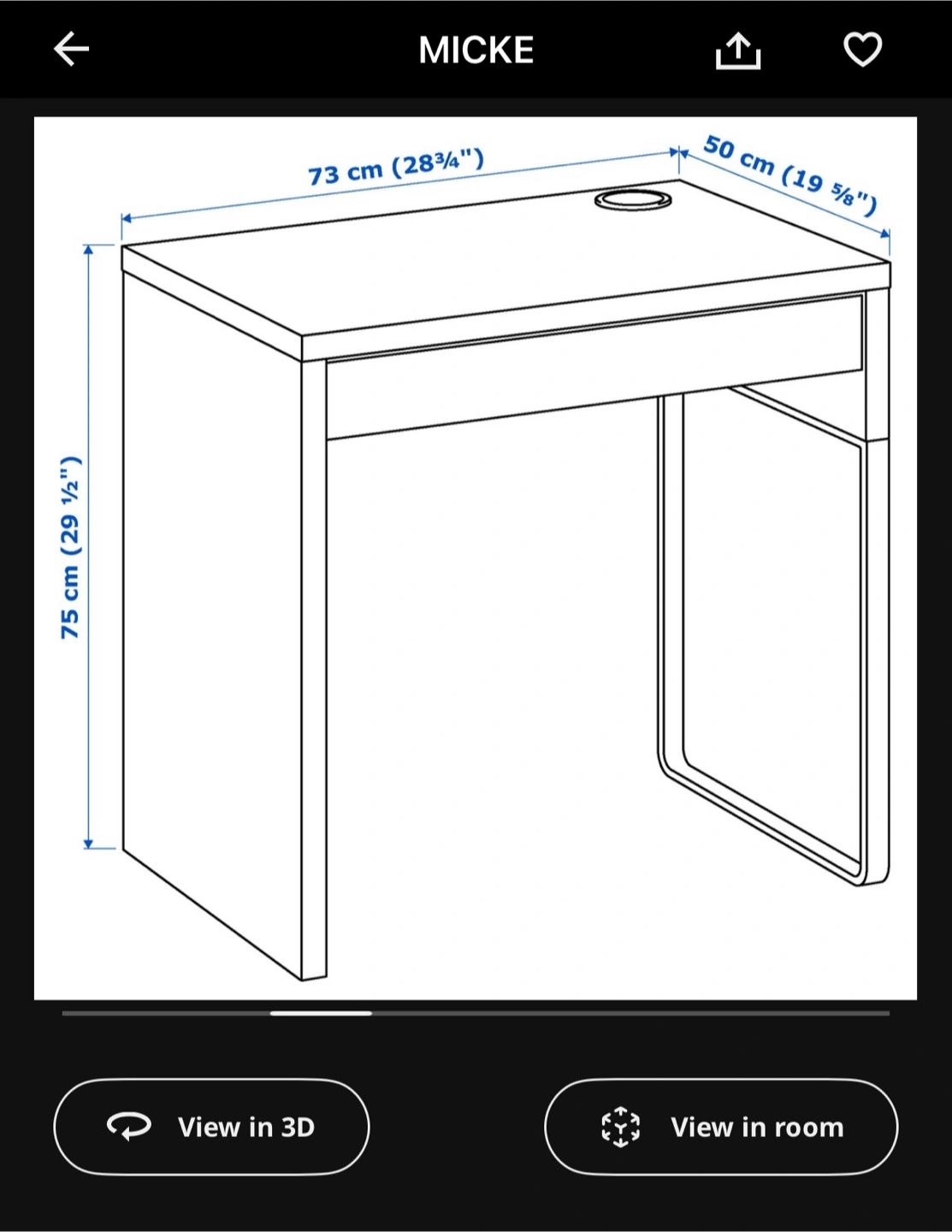 The desk also has a drawer. Dimensions are 28 3/4 x 19 5/8 x 29 1/2 inches