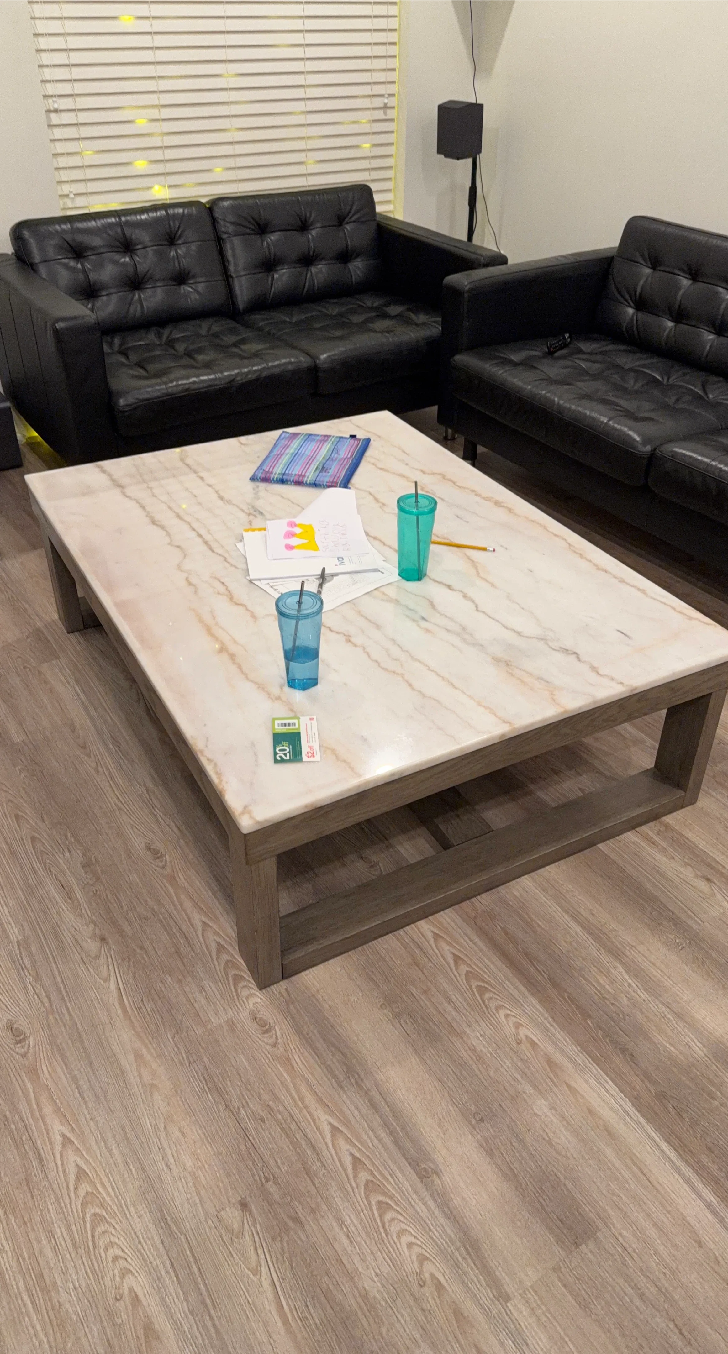 Marble Top Coffee Table with Wooden Base