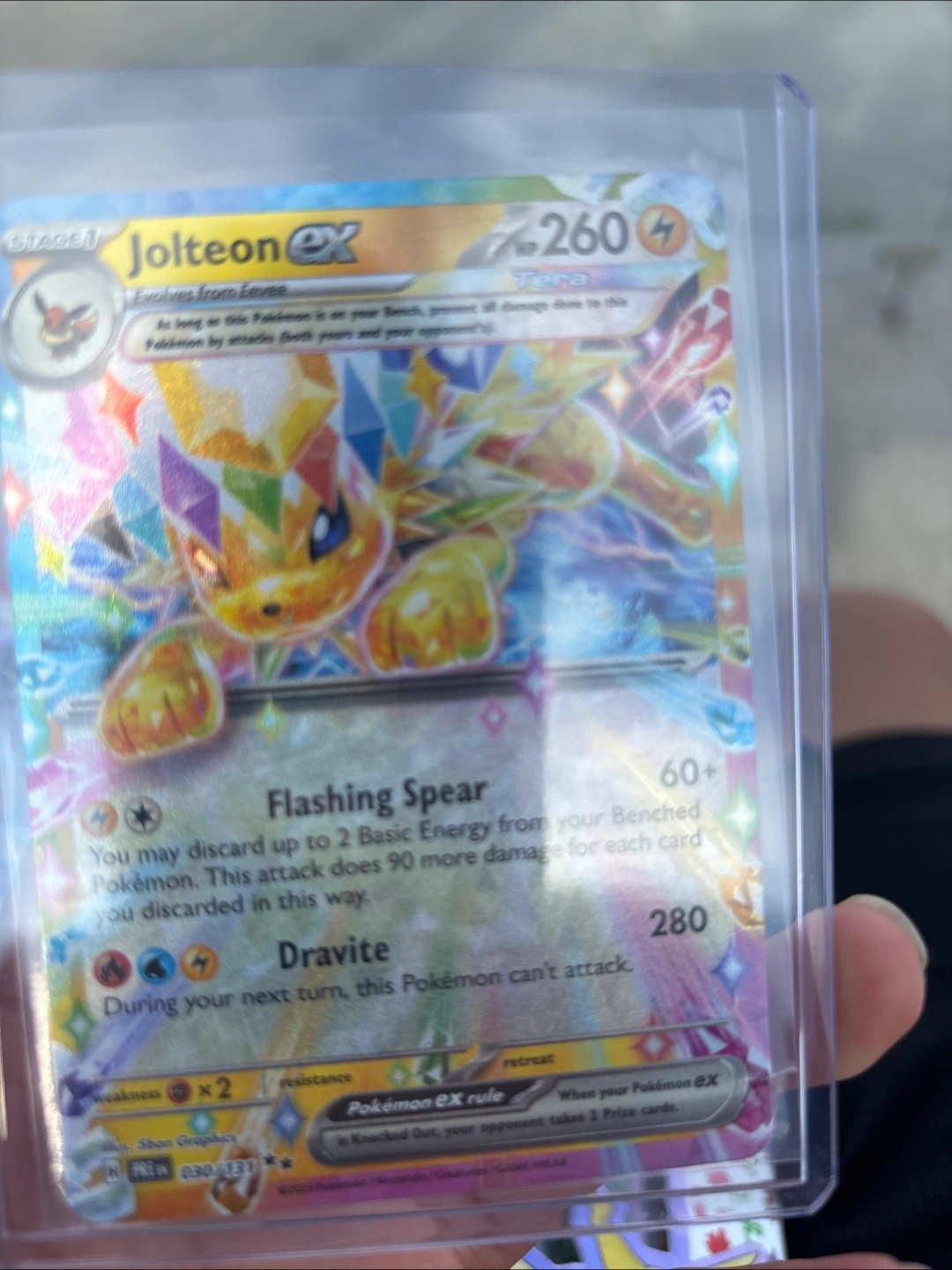 Buy & SellJolteon ex Pokemon CardJolteon ex Pokemon CardTradeSelling a Jolteon ex Pokemon card. It's in great condition and ready for a new home! Features the Flashing Spear and Dravite attacksWHERE TO MEETCheck LocationView MapSELLERNickMilliken E100 reviews2 chats·0 favorites·100 viewsSEND CHAT TO SELLERHi Nick! I’m interested in your listing.Hi Nick! I’m interested in your listing.Get the Karrot app to chatSign In to chat
