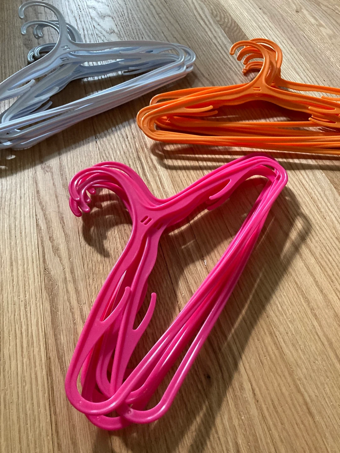 21 plastic kids hangers - pink, orange & white