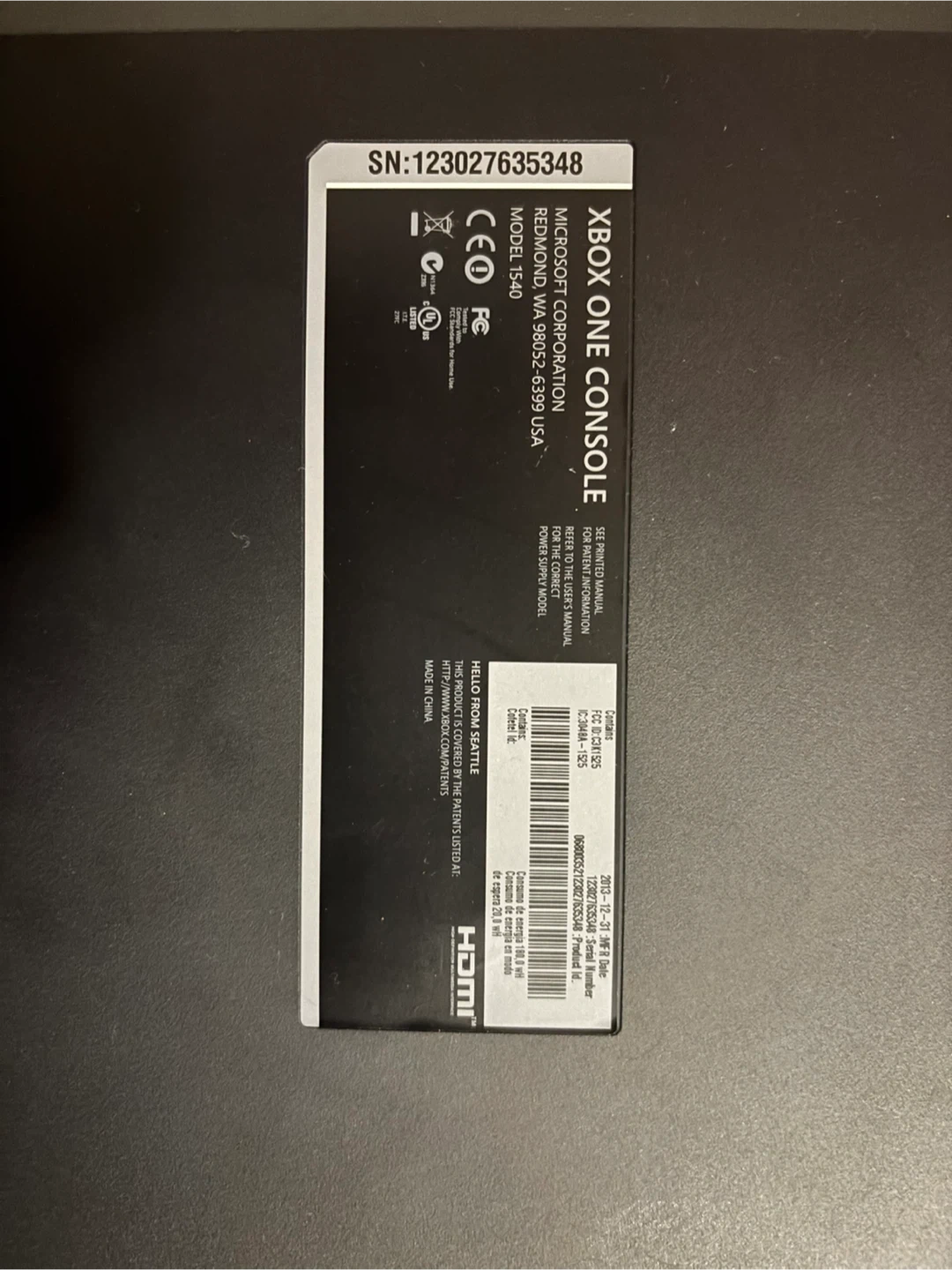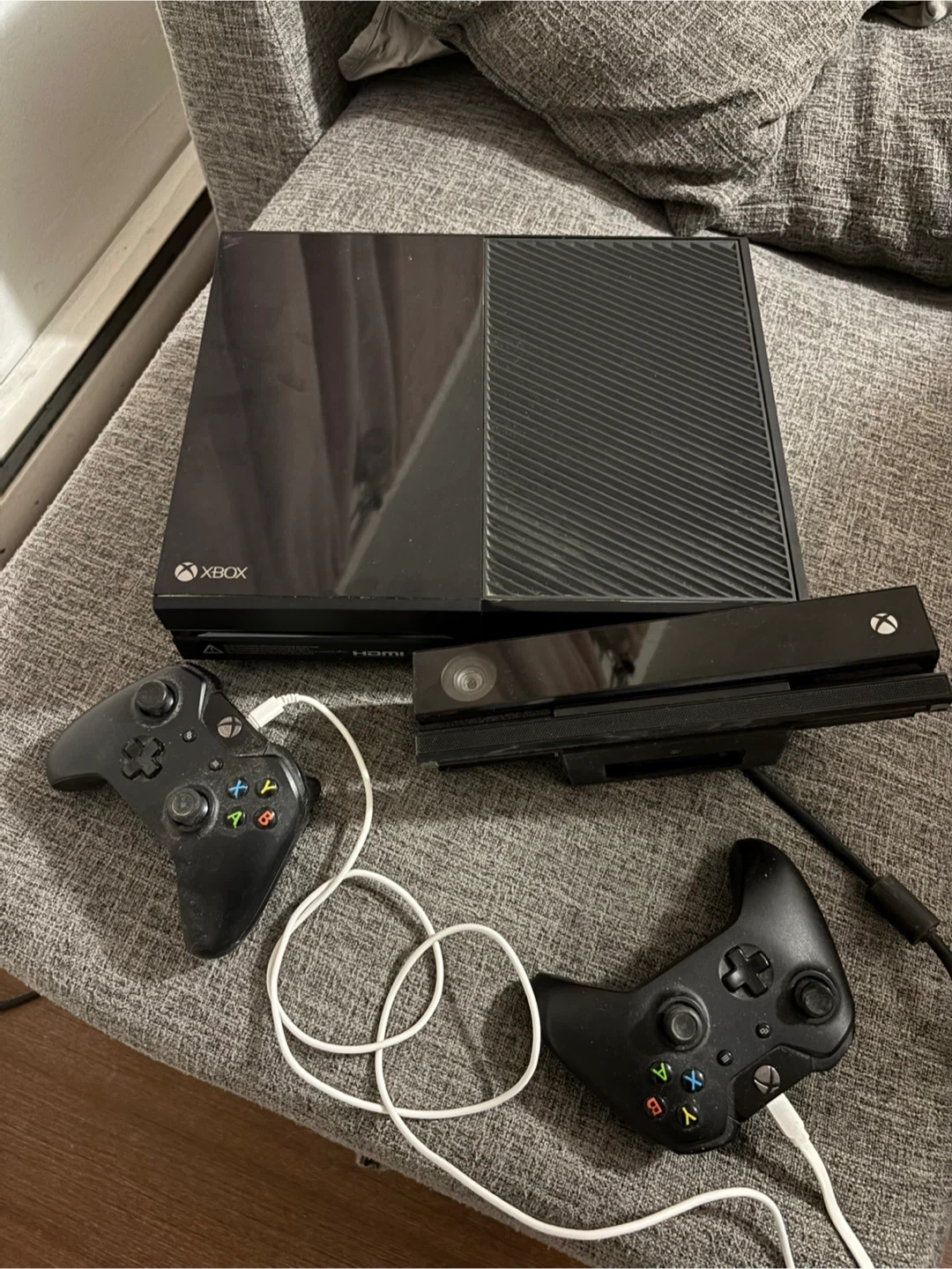 Xbox One console, Model 1540. Comes with a Kinect sensor and two controllers. All parts are black. A great way to enjoy your favourite games!