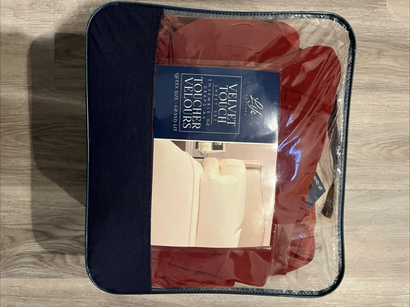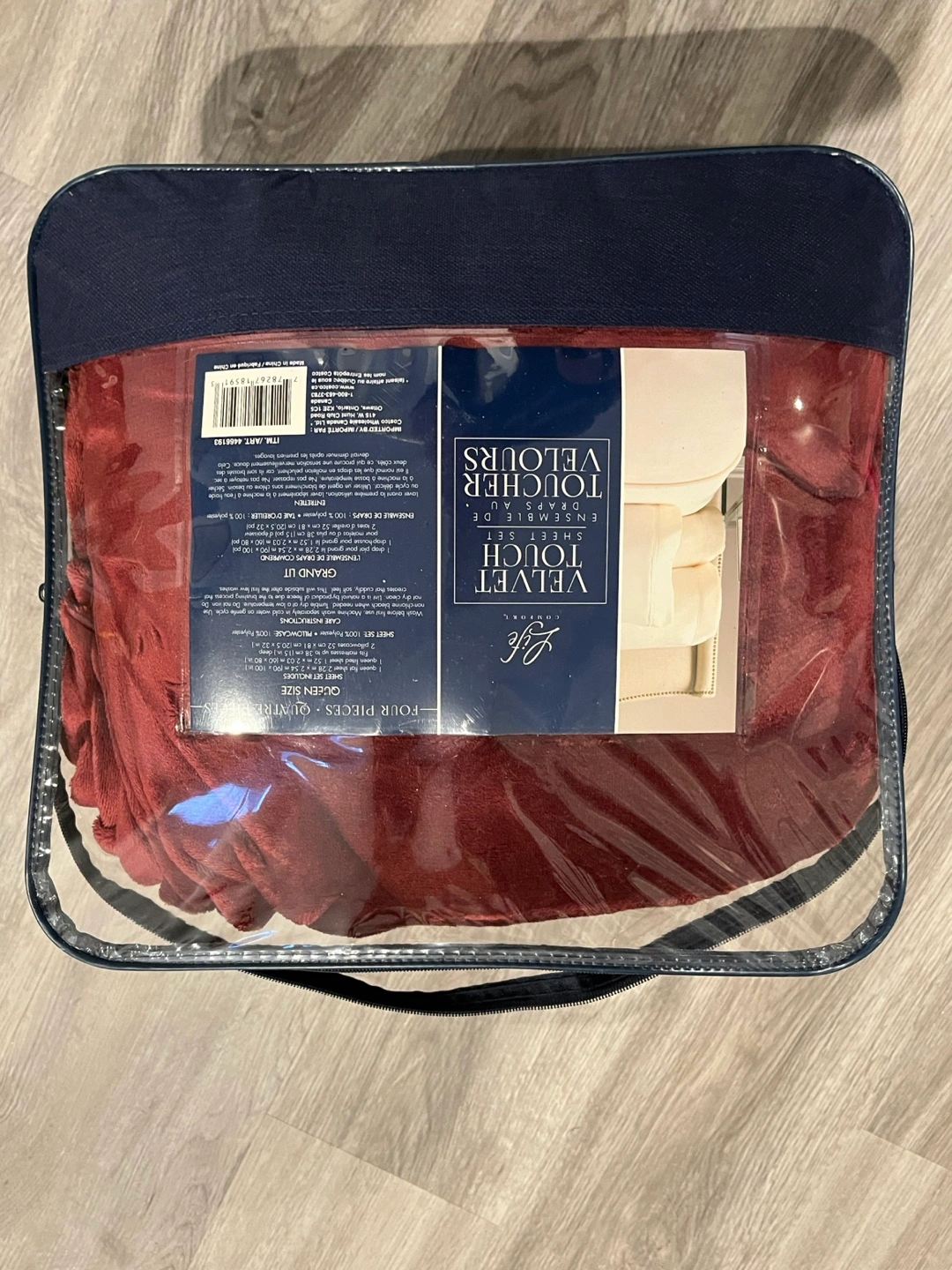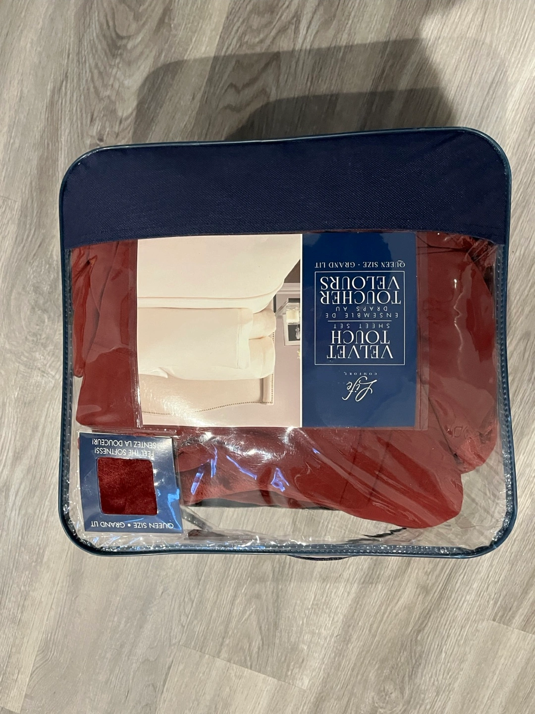 I'm selling a gently used Life Comfort Velvet Touch Ensemble de Draps quilt in queen size! It's still in the original packaging. This four-piece set includes everything you need for a cozy and stylish bedroom upgrade