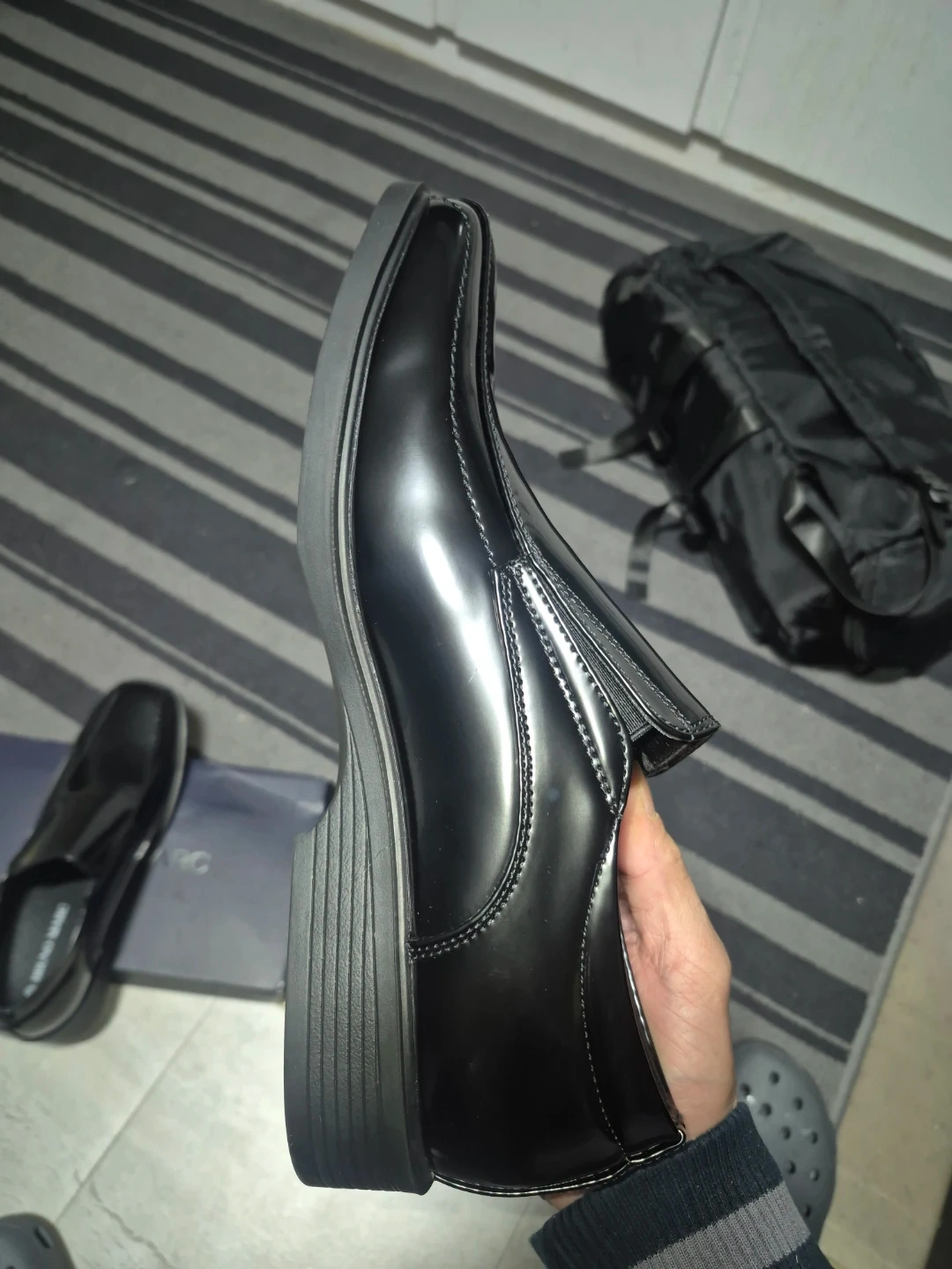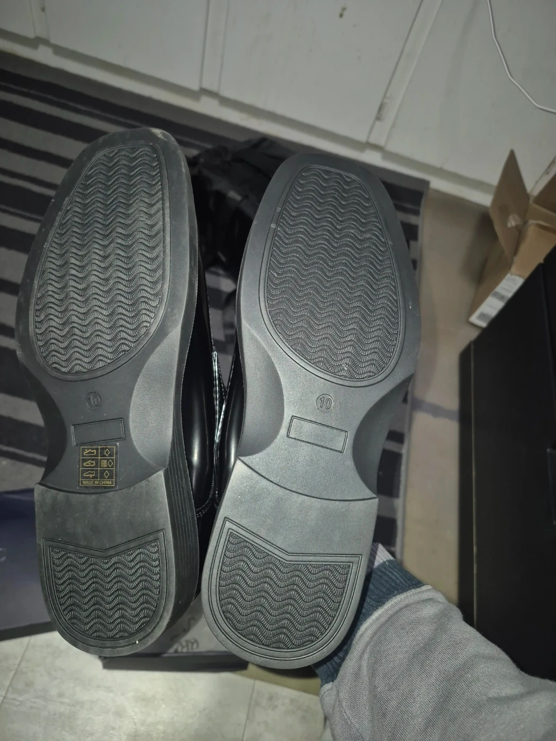 These Bruno Marc dress shoes are a classic black slip-on style. They feature a glossy finish and durable rubber sole. Size is 10. Ididn't used even once