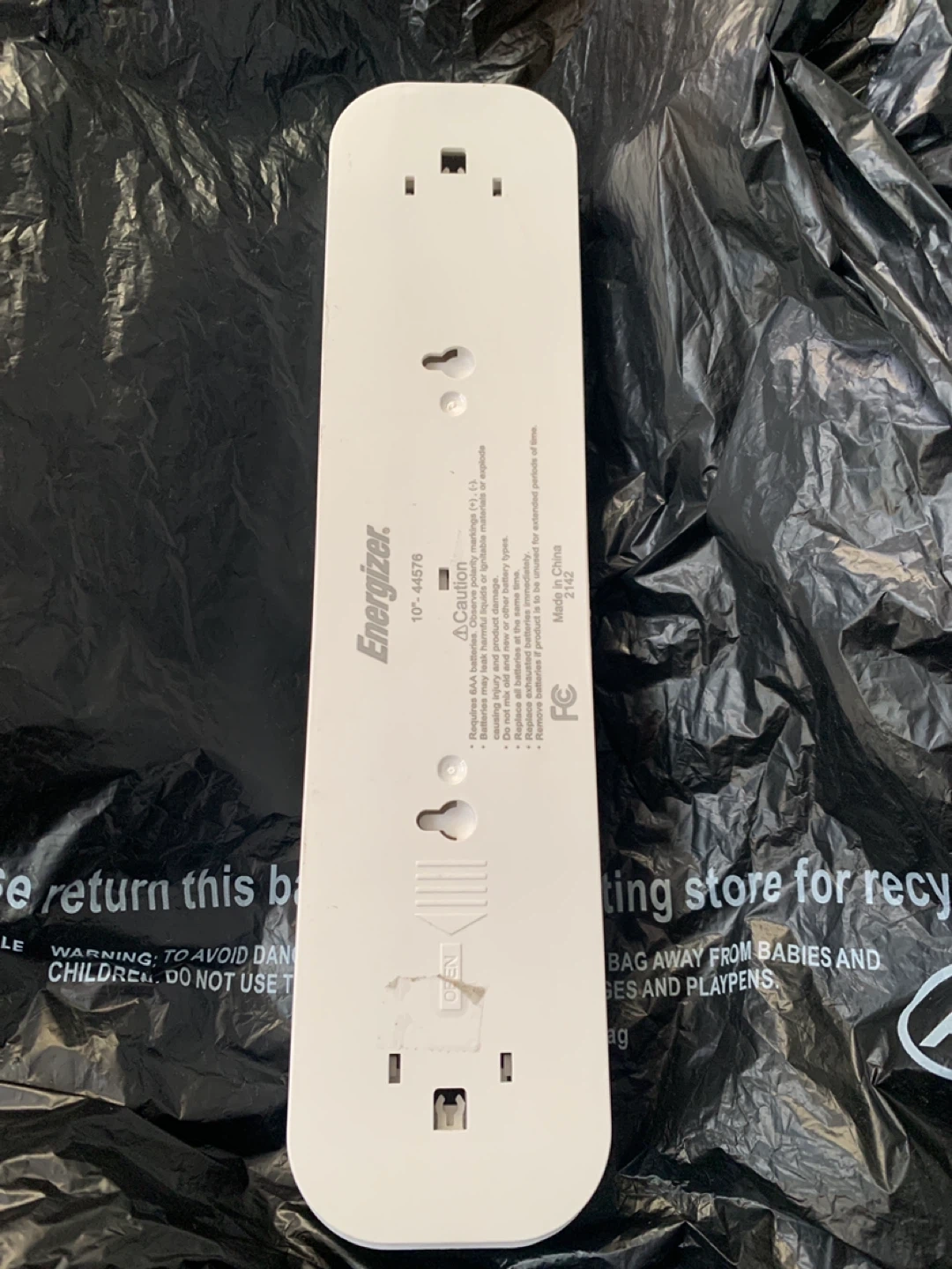 This is an Energizer LED light. It's white and has an ON, OFF, and RF setting. Uses 4 AA batteries.one of a kind!!!!I could drop the price to $5?