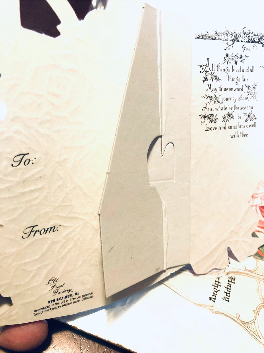 💕It's a gift of Victorian Elegance and includes die-cut paper pieces. The 3D Card kit comes with a stand-up easel and an envelope. This is a vintage, intricately designed Valentine's Day pop-up card featuring charming Victorian children surrounded by floral motifs. The card includes a central red heart that opens to reveal text, and the inside panels contain poetic verses. It's a beautiful piece of ephemera that captures a nostalgic aesthetic. This card would be lovely for a collector or someone who appreciates antique stationery.