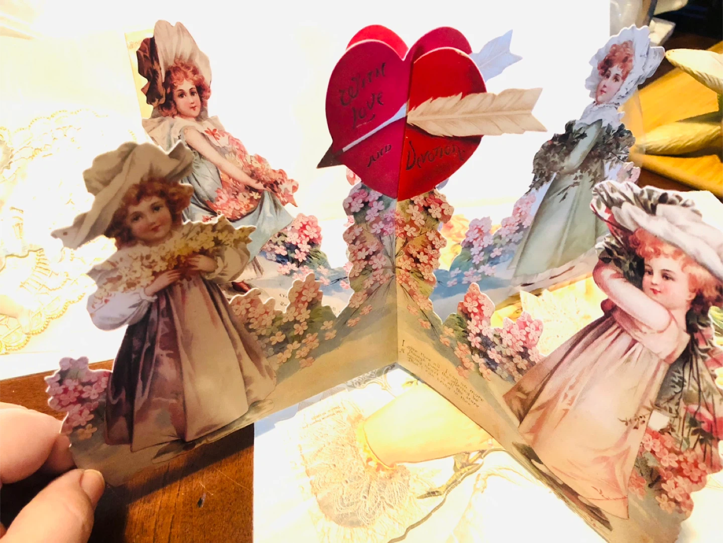 Vintage Valentine's Day Pop-Up Card with Victorian Children