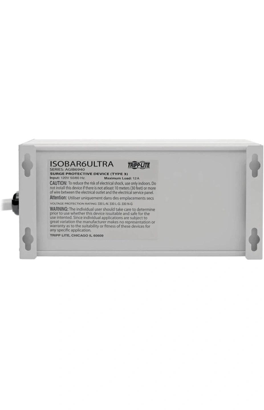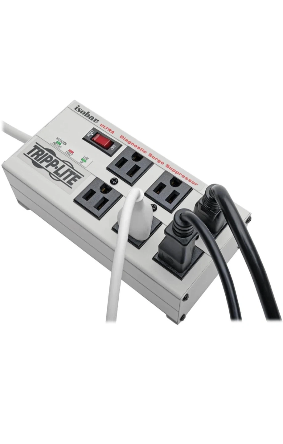 This Tripp Lite Isobar Ultra diagnostic surge suppressor offers reliable protection for your electronics. It features an indestructible all-metal housing and exclusive isolated filter banks. The unit provides 3330 joules of surge protection. It has 6 outlets.