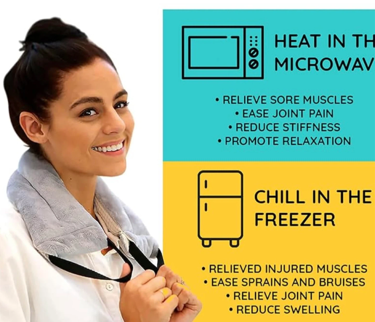 I'm selling a HP Solutions microwaveable heating pad for neck pain relief! It's designed for both hot and cold therapy, providing soothing relief for sore muscles and joint pain. You can heat it in the microwave or chill it in the freezer for versatile use. Brand new, never used! $28 on Amazon!