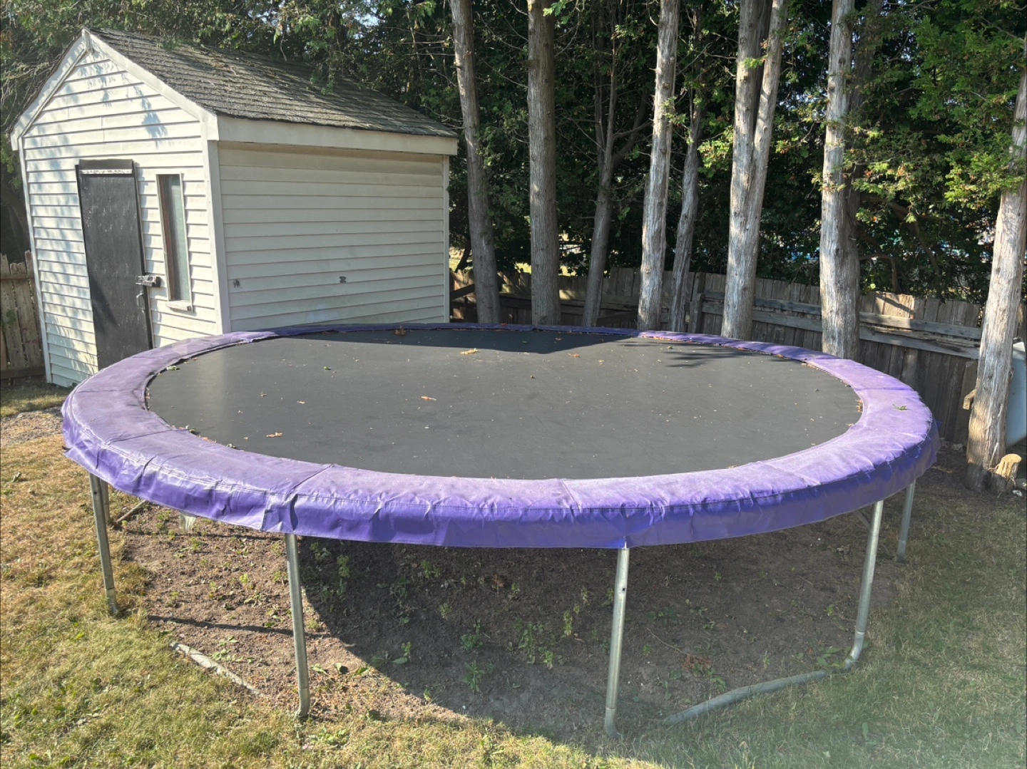 Selling a 16“ trampoline with purple trim. It's in good condition and ready for a new home! Perfect for some backyard fun.