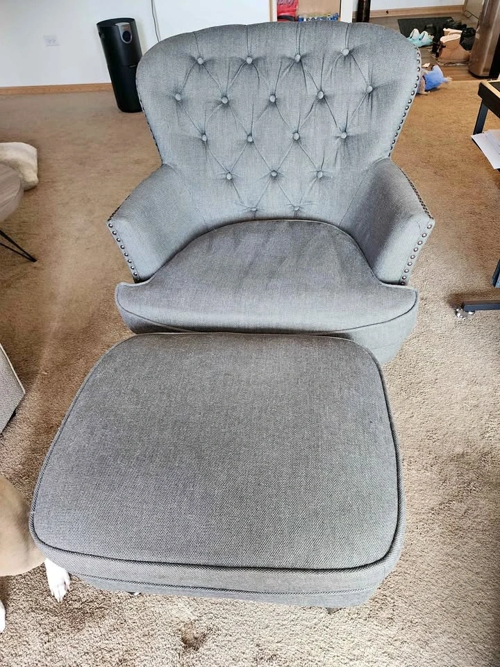 Button-tufted upholstered chair w/ottoman