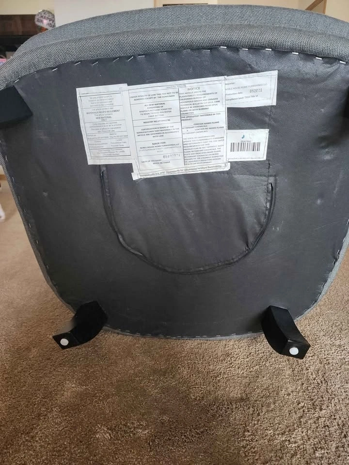 Slate gray color. No fraying, rips, or stains. Please note: comes from a dog and cat household. Pick up only from a 3rd floor apartment.