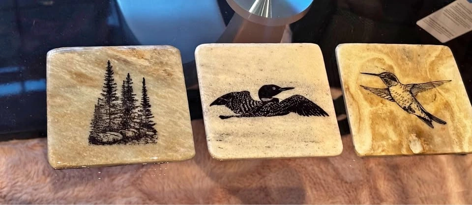 Coasters made of natural authentic Canadian rocks by Madoc Rocks. All coated in clear coating to protect the rock. $25 for all 3. Pickup in Waterdown.