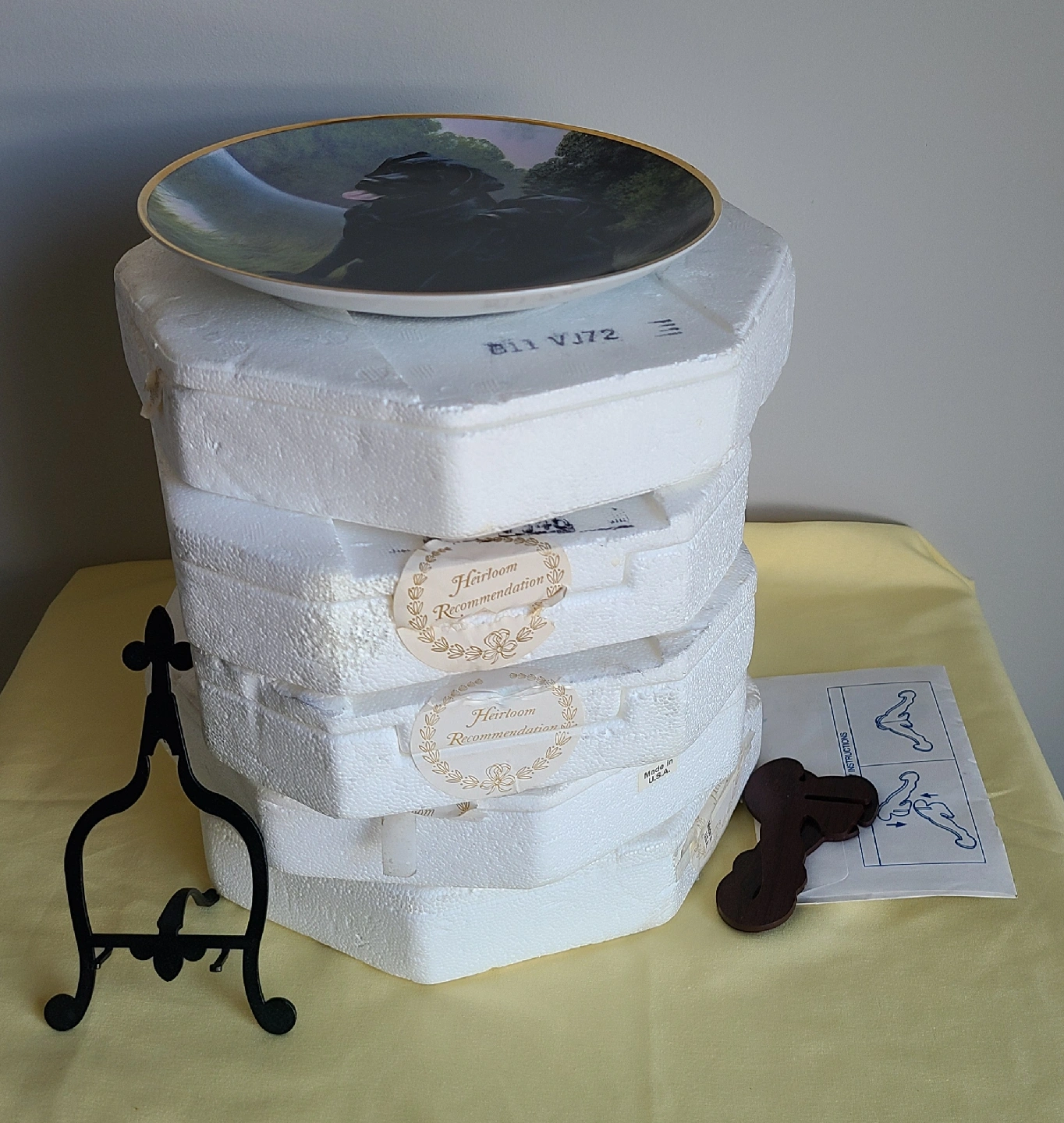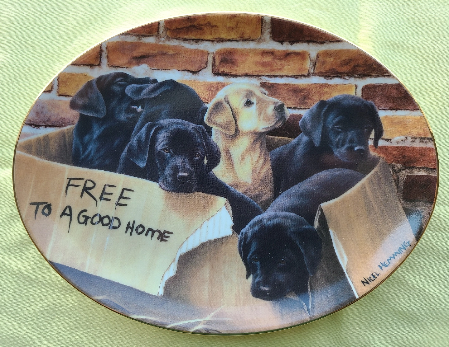 Selling a collection of Nigel Hemming collector plates from The Franklin Mint, featuring adorable Labrador Retriever dogs. These plates would make a lovely addition to any dog lover's home or collection. Five of the 6 have never been displayed and come with styrofoam boxes. The other was displayed very briefly. All in perfect condition. There are 3 plate stands to go with plates. 1. Take Me Home 2. Father's Pride and Joy 3. Free to a Good Home 4. Golden Companions 5. Sporting Companions 6. Royal Doulton, The Sporting Life Pick up only. No delivery. Price negotiable.
