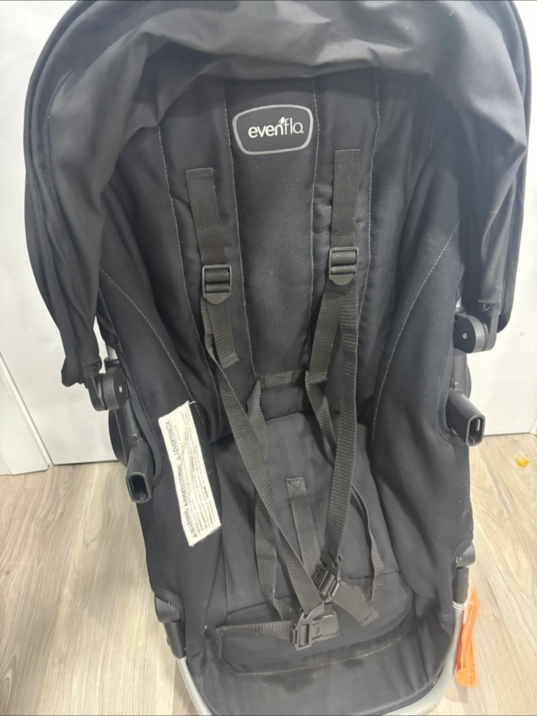 Selling a used Evenflo stroller in black. It's in good condition and ready for a new family! Great for walks around the neighbourhood or trips to the park. It's a reliable and sturdy stroller.