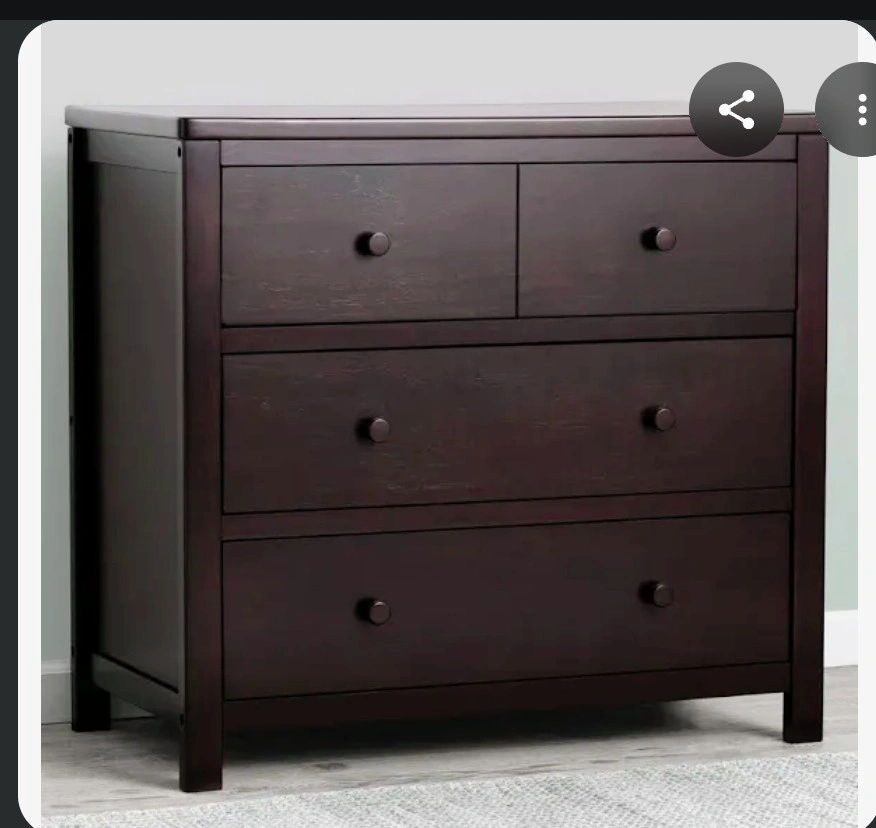 Here's a lovely dark brown wood dresser. It features a classic design with multiple drawers for ample storage. Perfect for a bedroom or nursery!