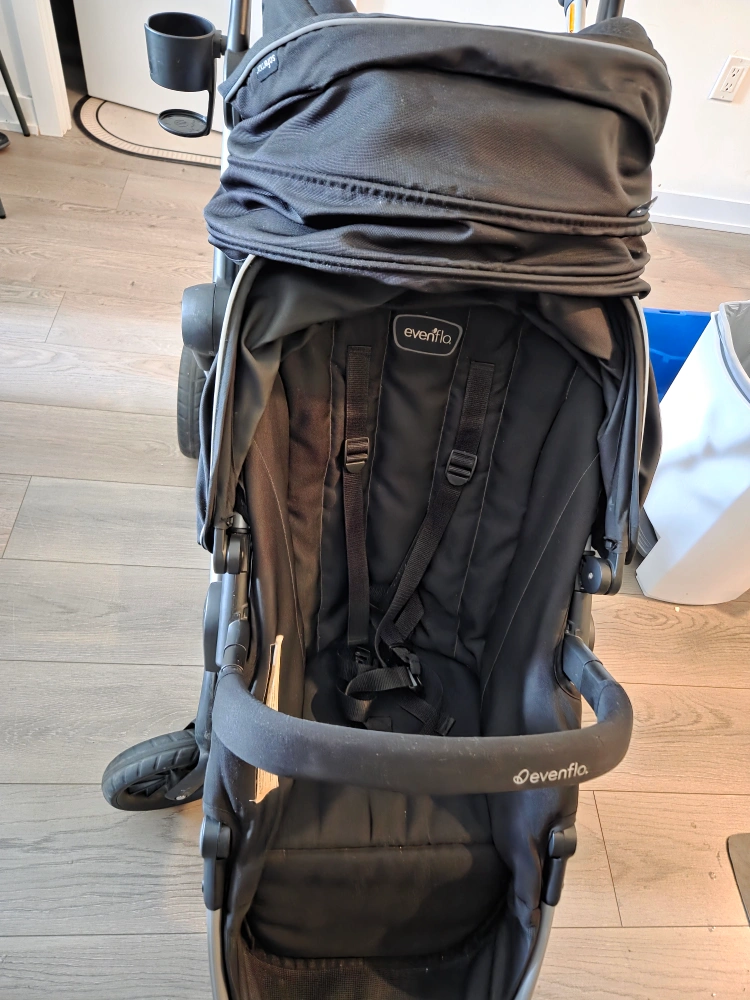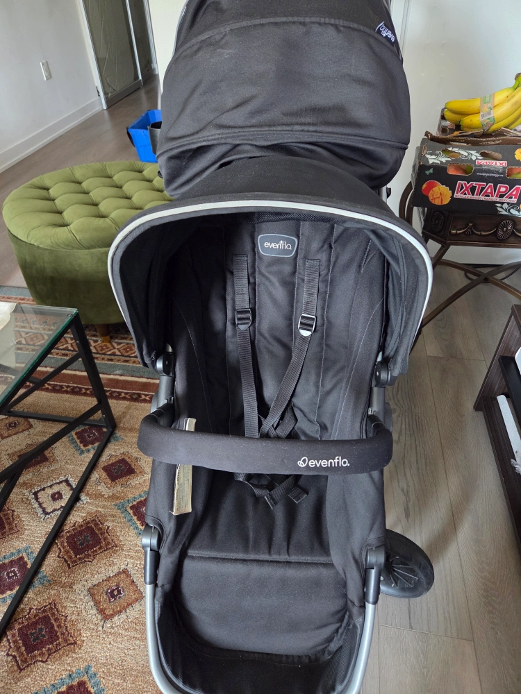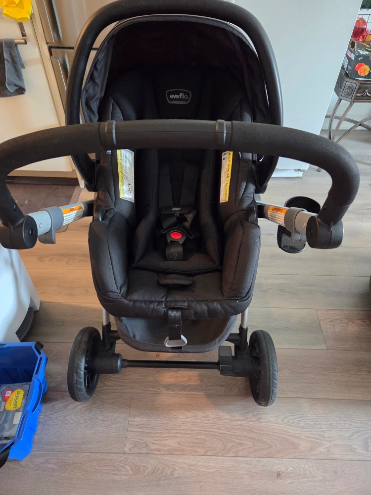 Selling an Evenflo Pivot Xpand Travel System in good condition. This system includes a stroller and infant car seat combo, making it super convenient for parents on the go! The stroller can convert to a double stroller as your family grows. It's a great choice for families looking for flexibility and ease of use
