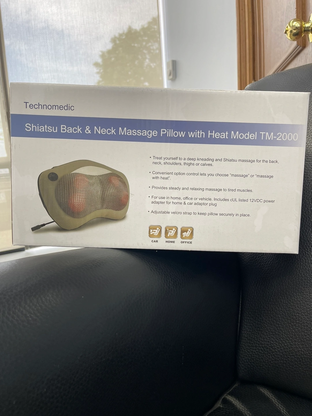 28Brand new in box, back, neck, shoulders and thighs massager with heat. You can set it to ‘massage’ or ‘massage with heat’.