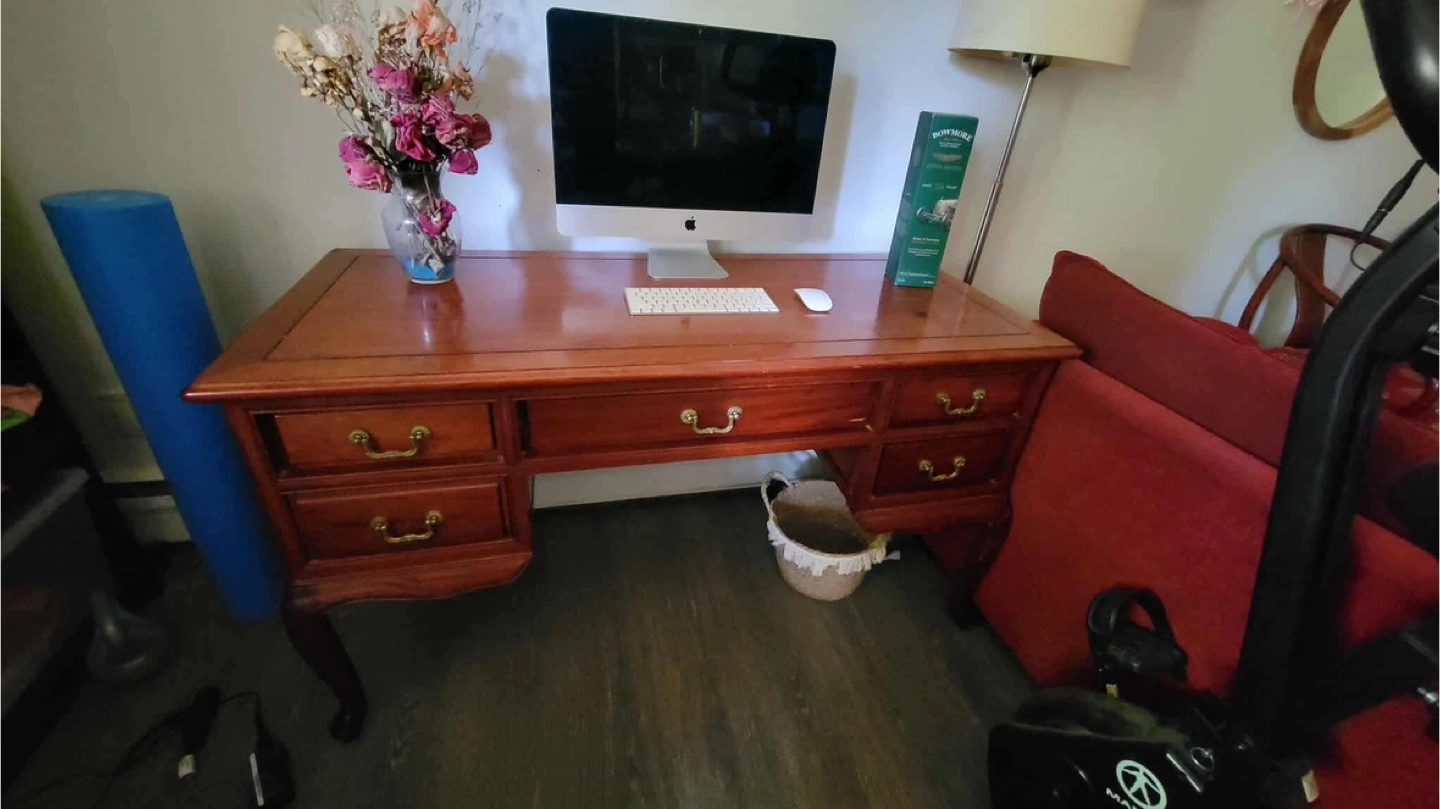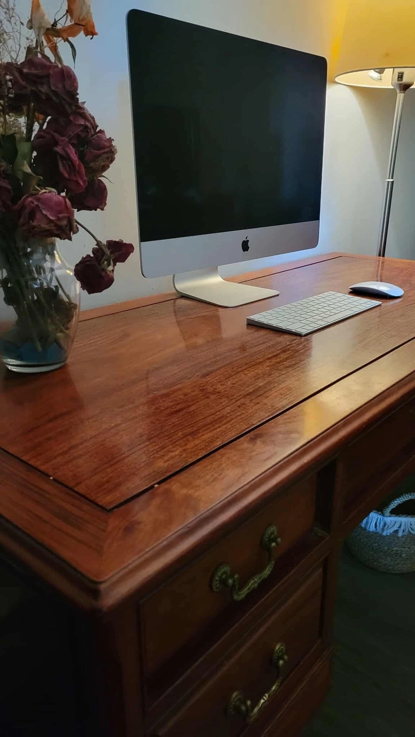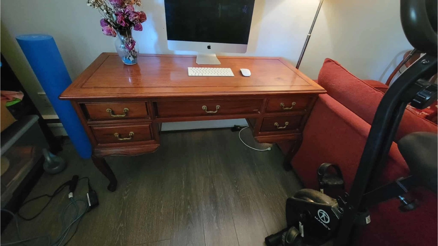 Antique desk and chair, still good condition just a little scratch on the corner (see photo) going for $10,000 online.